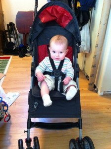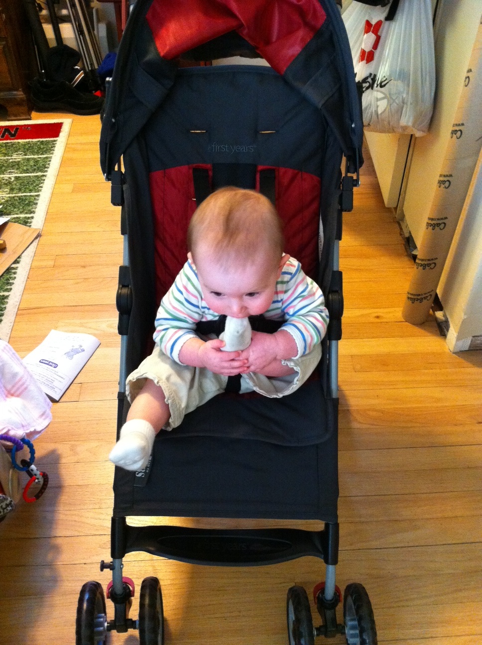 Yesterday the new umbrella stroller we ordered arrived, so I put it together and gave D a few spins around the house to test it out. She loved it.