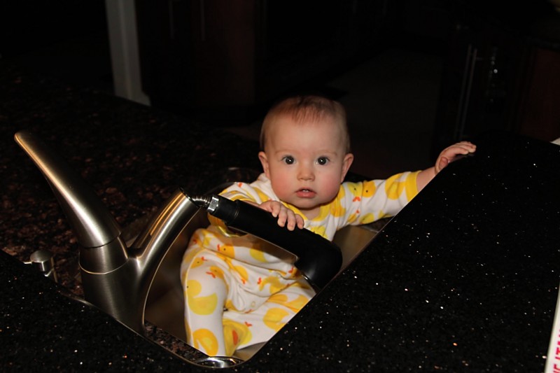 She likes to rock her highchair. And I don’t mean like she’s all heeeeyyy, check me out in my new highchair. I mean she literally rocks the thing. At meal times she’ll take a bite, then rock back and forth, slamming into the back of the seat and scooting the whole chair. Granted the wheels do lock to prevent movement, so it’s not like she’s cruising around the house in a highchair, but it’s still funny. 😉 This chick does not like to sit still.
