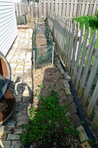 Of course everyone else in the greater Milwaukee area had the same idea, and the garden store was PACKED. But I got everything I needed relatively painlessly and was home an hour later to get to gardening. I got 2 Roma tomato plants, a Boxcar Willie heirloom tomato plant, a Mr. Stripey heirloom tomato plant, a green pepper plant, a red pepper plant, romaine lettuce seeds, sweet basil seeds, purple basil seeds, cilantro seeds (yuck! but R loves it), tomato stakes, some new netting to put around all the gardens so I no longer have to scratch the crap out of my hands trying to weave together all the stupid short pieces of chicken wire I’ve been using the past couple years, and 3 Gerbera daisies for the pot I put on our front walk. R went to Home Depot this afternoon and brought home some more seeds – cucumbers, sweet peas, and more herbs – so I planted those as well as some green bean seeds we had from a year or two ago.
