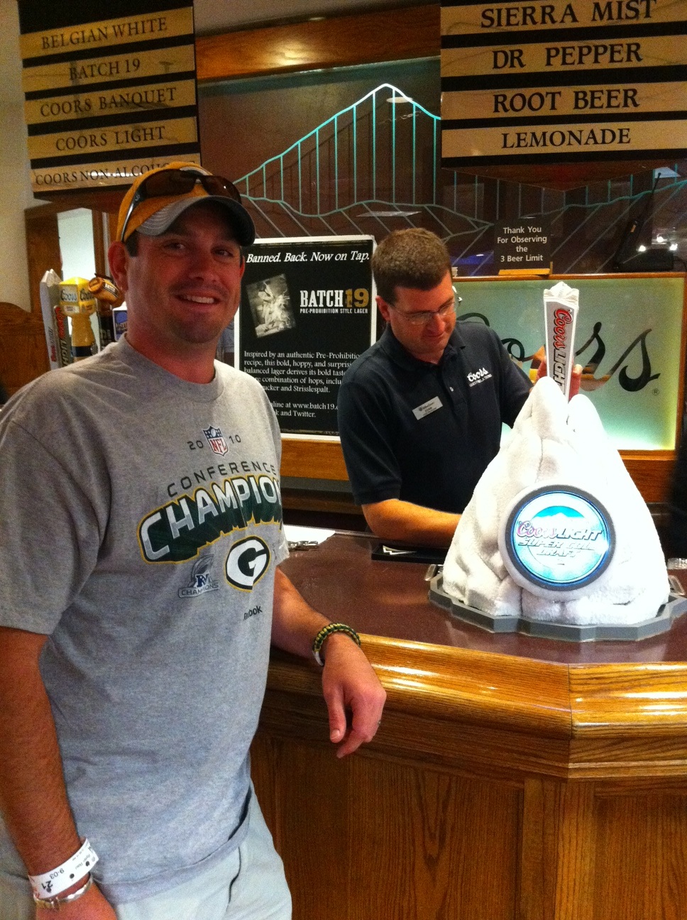 R getting a beer from the frosty mt. tapper