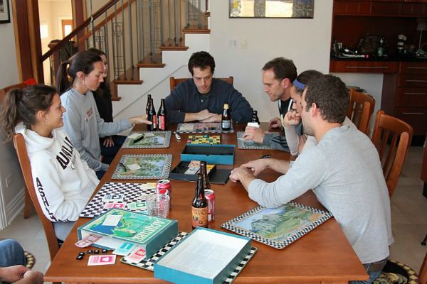 Many an hour has been spent at this table (and many a beer drunk, as you can see) playing board game after board game during family get-togethers. Can’t you just feel the concentration?
