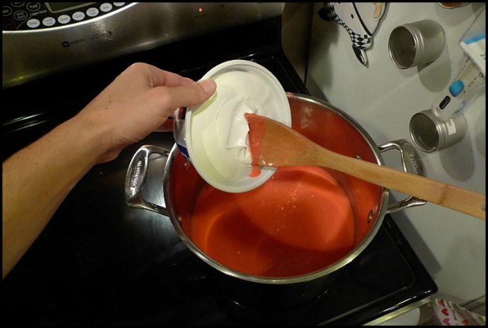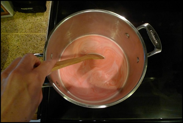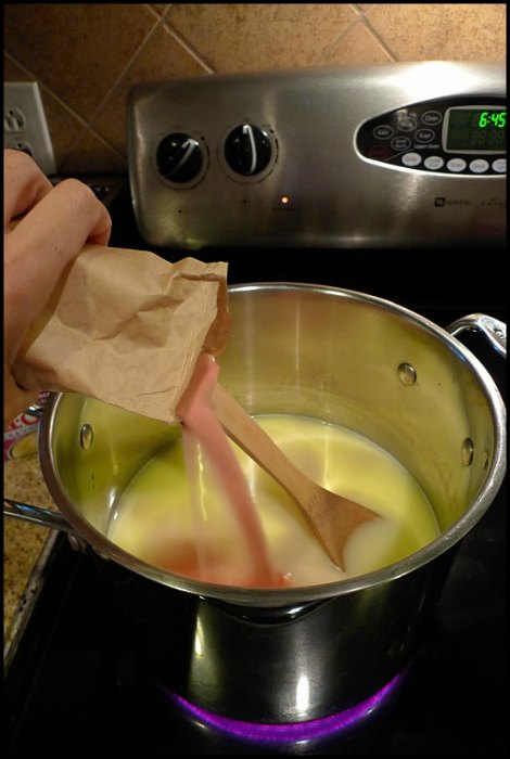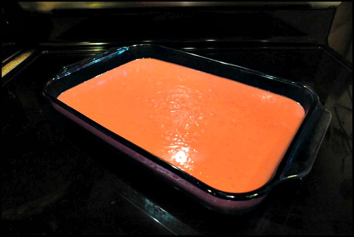 - 1 – 6 oz. package of Jell-O (i prefer cherry, but i can’t always find it in the big package so often end up using strawberry. but whatever flavor you like best will work, pink or not.)