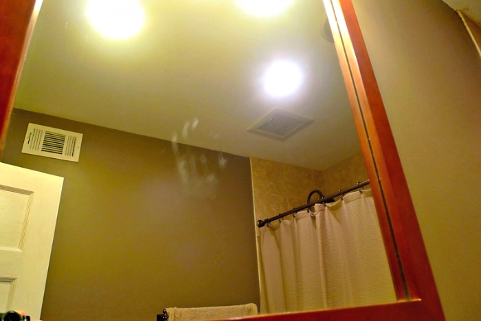They don’t show up extremely well, and it was hard to even capture the hand prints at all with a white ceiling and bright lighting, but I tried to see just how big mine was next to her 22-month-old hand.