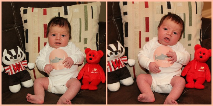 This kid is strong! From about the minute she was born she’s been able to pick her head fully up off your shoulder and move it around. She turns it side to side on her own while sleeping, even though I do make sure to put her down on opposing sides during the night. She grips stuff like nobody’s business, and she loves to try to stand up when her feet rest against your lap. She enjoys busting her little hands out of her swaddle, but it does still help keep her contained and calmed at night. She’s quite the startler, too. I admitted that napping on her stomach helps that to the doctor yesterday, for which I was promptly scolded. I know you’re not supposed to put babies on their stomachs until they can roll to help prevent the occurrence of SIDS, but I figured if she can move her head around on her own, she’s never face down, and it lets her nap for hours, why not? Wrong-o apparently. The doctor said SIDS happens much more often during naps than at nights, so I said ok, I’ll go back to playing by the rules.
