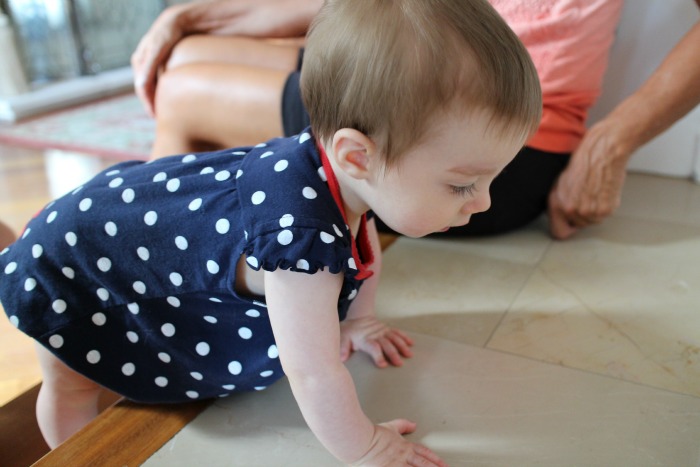 One big accomplishment she had was crawling up the steps at my mom’s house too. They have 2 steps from the living room into the kitchen, and she handled them like she’d been crawling since day 1. It was pretty impressive.