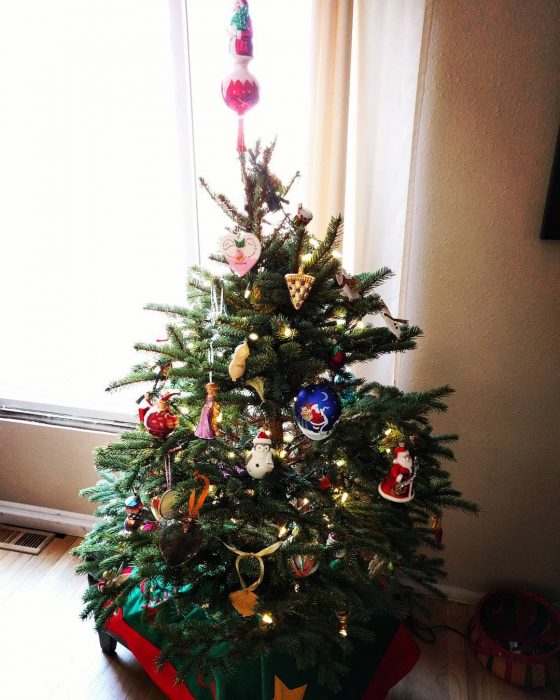 Our tree is up, tiny, and perfect for this year. I wanted a small one so Morrison doesn’t constantly trip and fall into the thing, ruining umpteen ornaments. Next year we’ll probably be back to full size. I think it turned out splendidly.