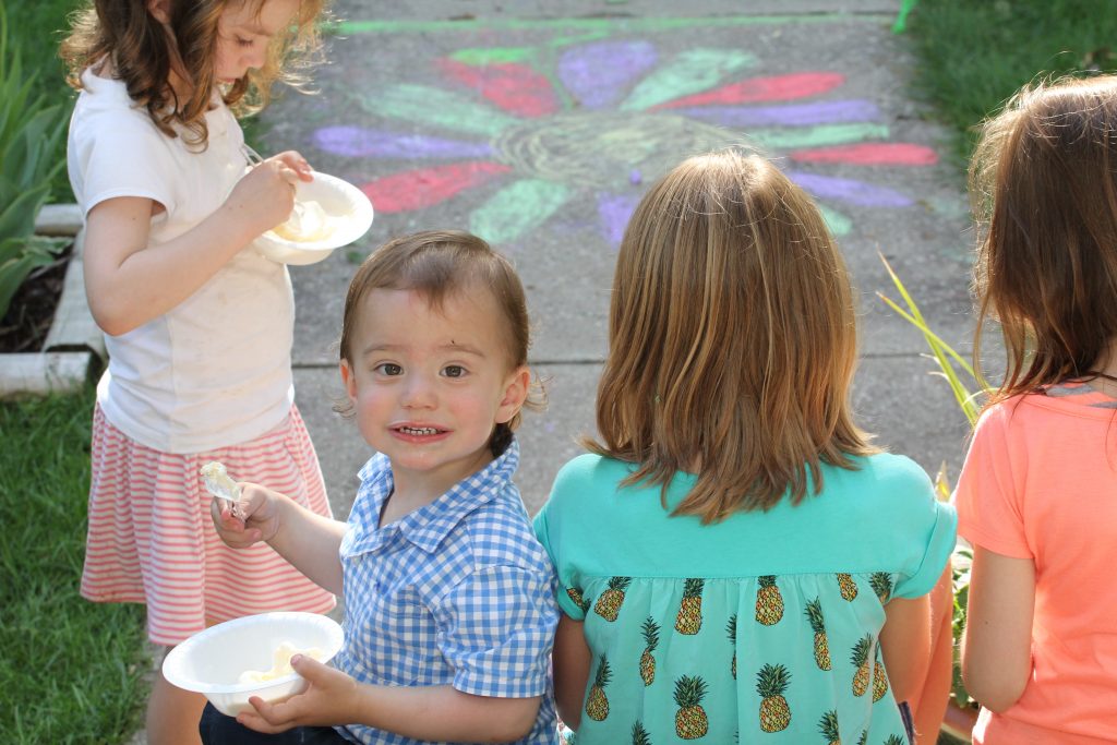 He loves to stack and build. Yesterday he put together a wooden train track he got for his birthday all by himself. He’s great at manipulating toys and things, and I get mesmerized watching his little hands work. His independent play is so good. He would stay out in the backyard playing with toys and their new grill set and food for hours if I’d let him.