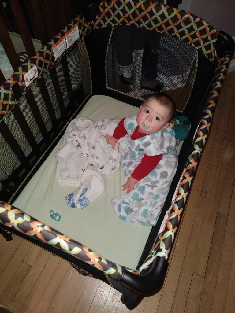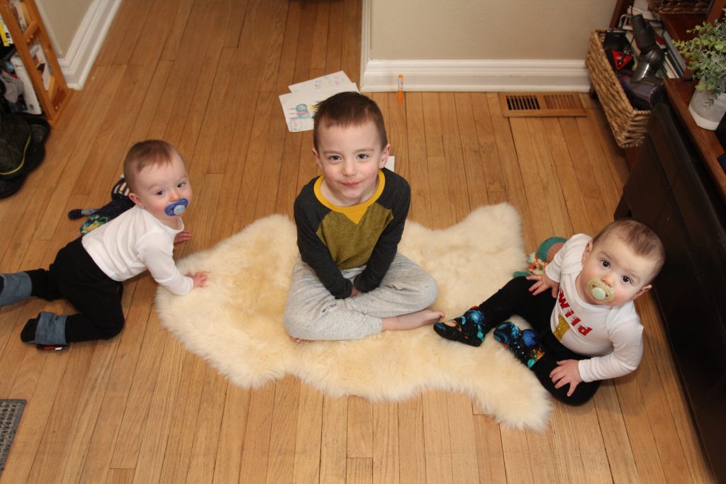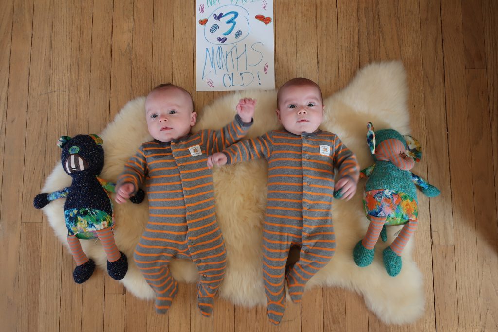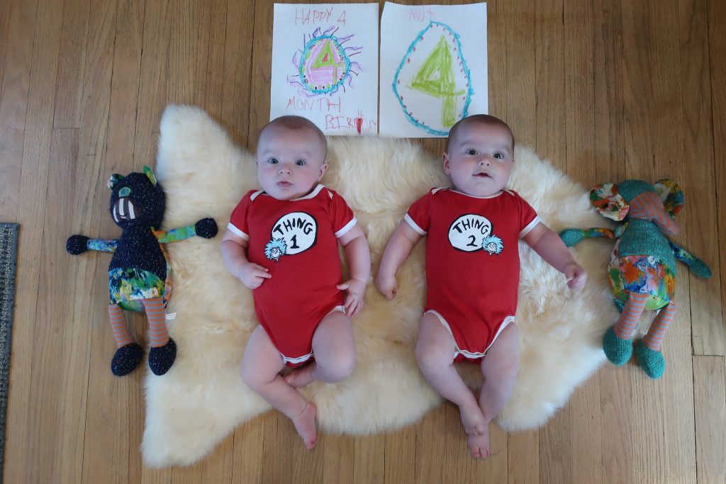 Within the past week I’ve replaced the dueling jumpers with the big playpen, which they actually enjoy. I think they like being able to play together when they have to be contained instead of just hanging separately with nothing really to do. I’ve also swapped out the infant bucket car seats and put in the rear-facing convertible seats, so they’re really getting to be big boys! It’s so crazy to watch the daily progression.