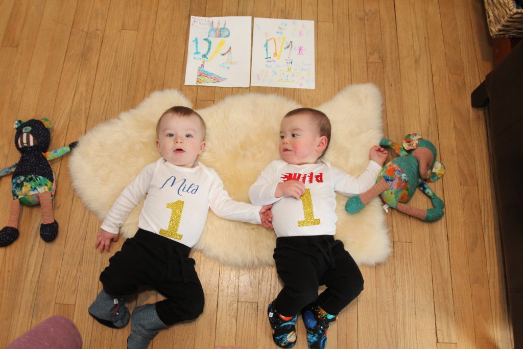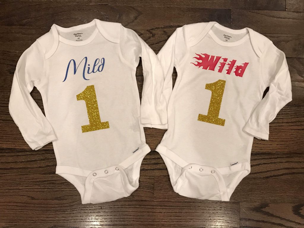 The onesies I had made for their birthday could not have been more perfect. Avit was “Wild 1” and Nat was “Mild 1.” Any more fitting would have been impossible. I loved it!