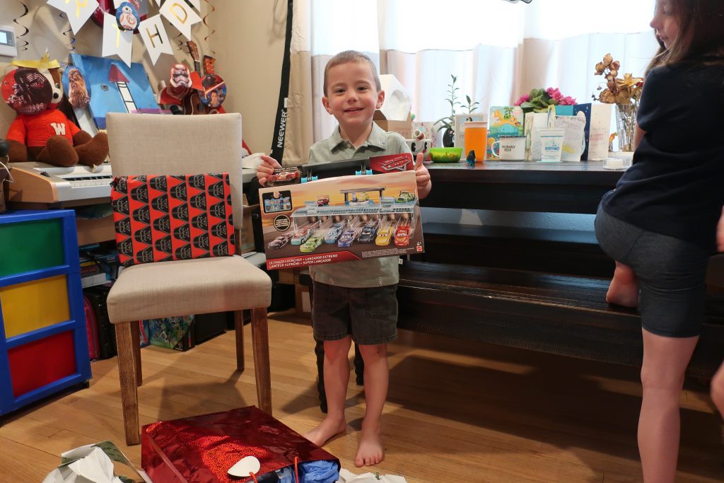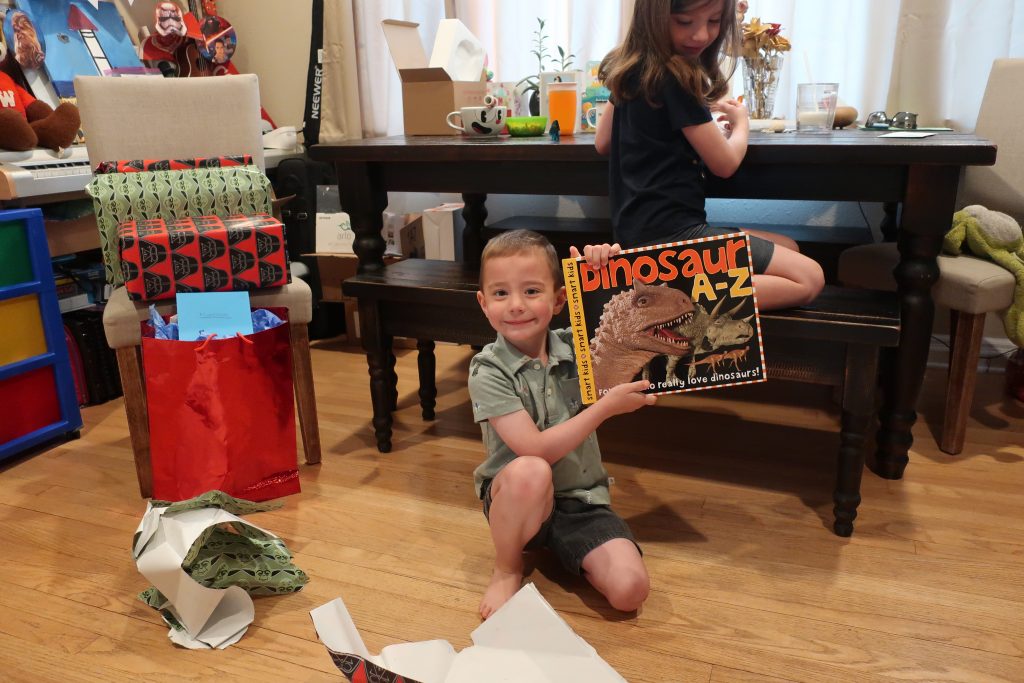 He still loves all things dinosaurs, Star Wars, Cuphead, playing with his sisters and friends on the block, helping with the babies, and he’s recently started getting into Pokemon cards. The neighbor boys have been very cute and generous and given him a little stack of them that he treasures.