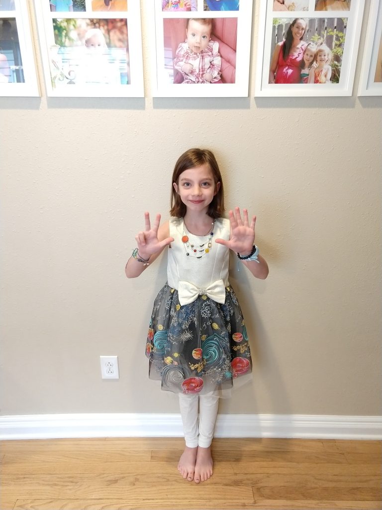 Happy 8th birthday, Lana Marie! Words can’t even express how much I love you, and you make us prouder by the day. It still takes me a couple tries to get you to hear me when I need to you do something and you are the queen of shoving toys wherever you want to put them instead of actually cleaning up, but I now know that’s just you, it’s not deliberate misbehavior. I will never, ever forget the night we brought you home from the hospital – the early darkness of a fall evening, which I usually hate, could do nothing to dampen the elation I felt having another baby girl in the house. Don’t ever let this world take your gorgeous essence away. It is the most defining part of you, and I couldn’t love it more. May your days always be filled with twirling, Nigh-Night, and love, my sweet baby girl!