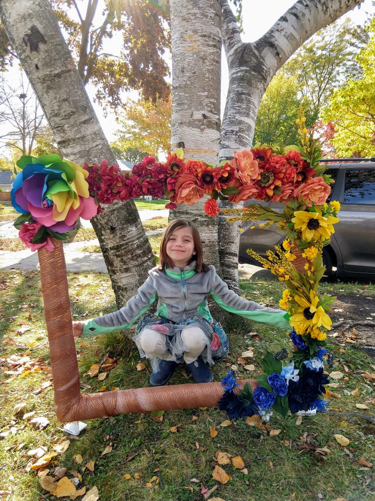Her birthday fell on an asynchronous day for school, so we didn’t have to worry about watching the clock to sign on to live class meetings. This allowed us to just follow a fun birthday schedule. She opened a bunch of presents in the morning, saving just a couple for later in the day after Daddy got home from work. They did their school work until about 10:00 that morning, then we headed out for a couple “field trip” errands. We picked up school supplies for D and M, picked up our online grocery order, stopped to take her picture in the beautiful frame her Girl Scout troop leaders made this summer for their bridging ceremony from Daisies to Brownies that never got to be used because of the pandemic, then we checked out a really cool house that’s right down on the edge of Lake Michigan and has a yard full of sculptures. The woman who lived there was an artist known as “The Witch of Fox Point,” and the kids were studying her that week in art. It’s a pretty cool sight to see, and they thought it was fun to see something from their studies in real life.