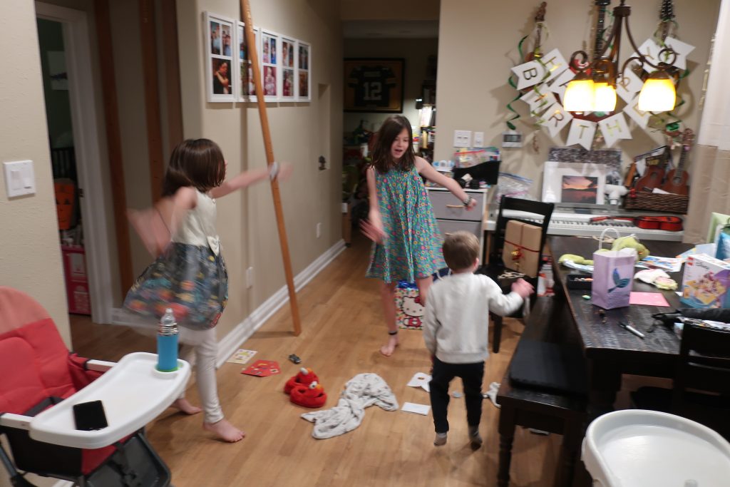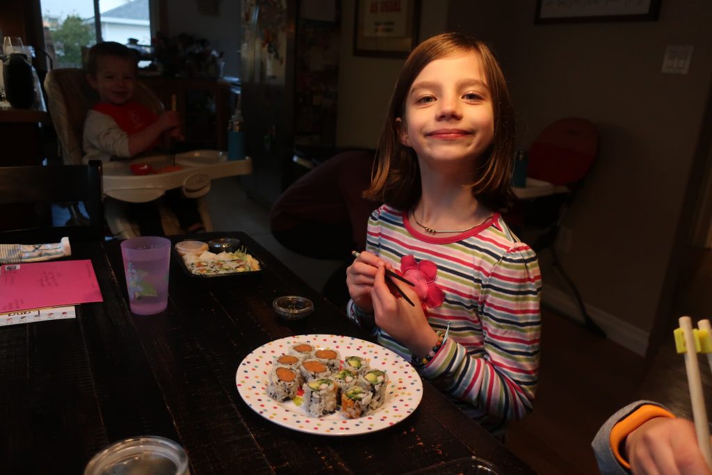 Then they finished up their lessons during the afternoon, Ryan took them to the park when he got home because it was the only beautiful day in a week full of rain, I picked up her requested sushi for dinner, and she opened the rest of her presents that night. Talk about the perfect way to celebrate a birthday! She was in heaven. We even sang “Happy Birthday” to her twice, because the video camera malfunctioned during the first rendition.