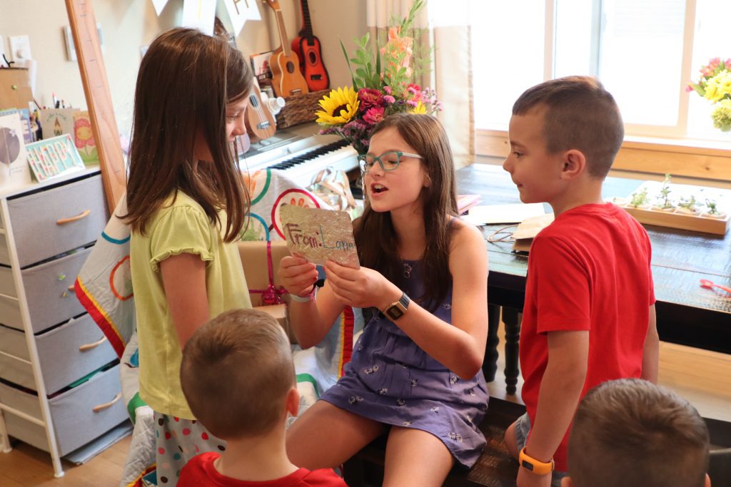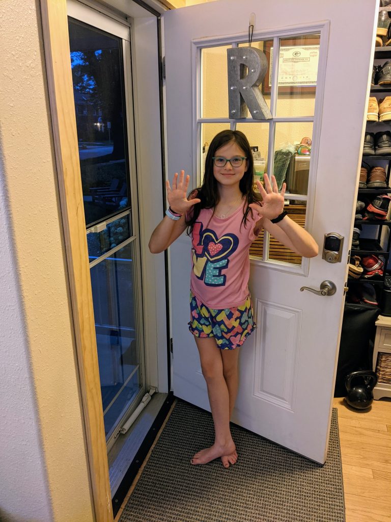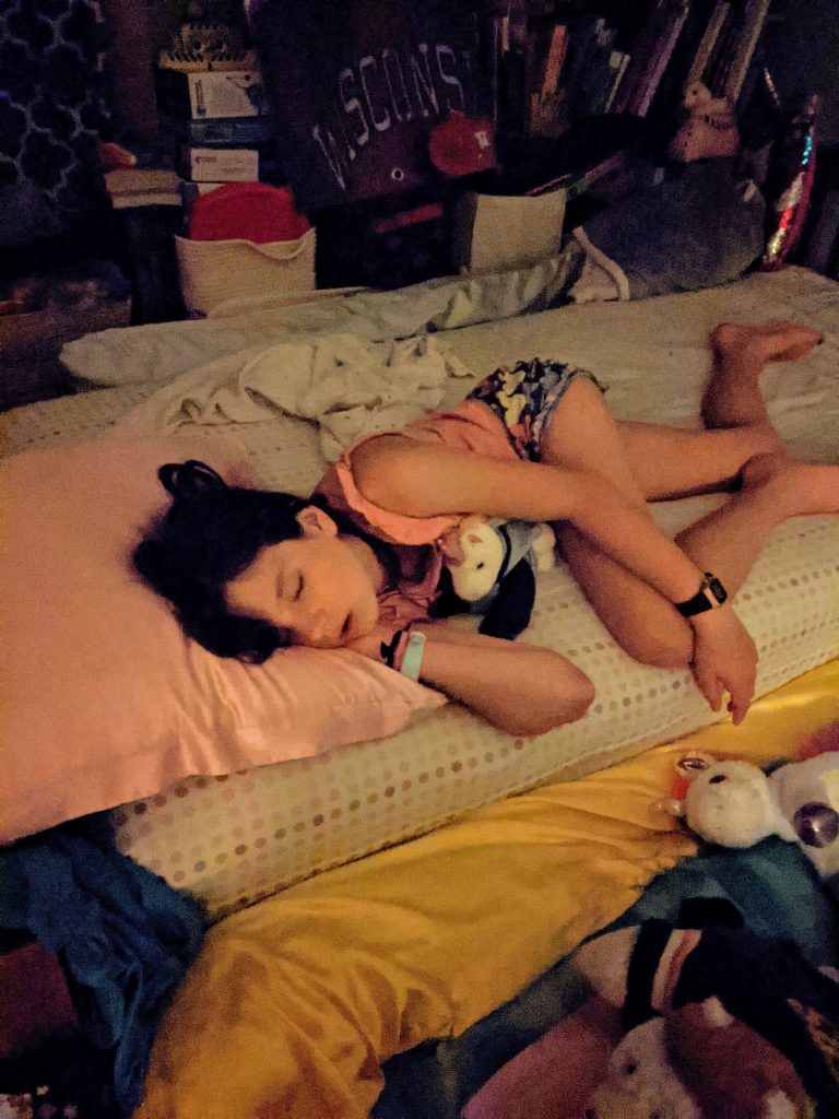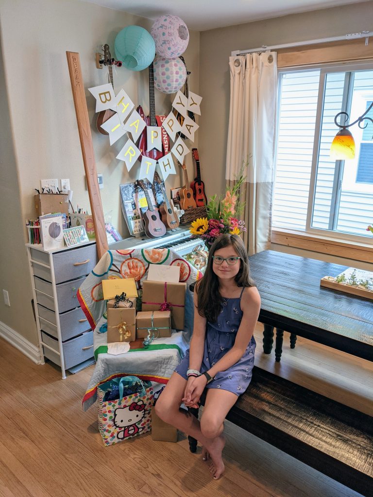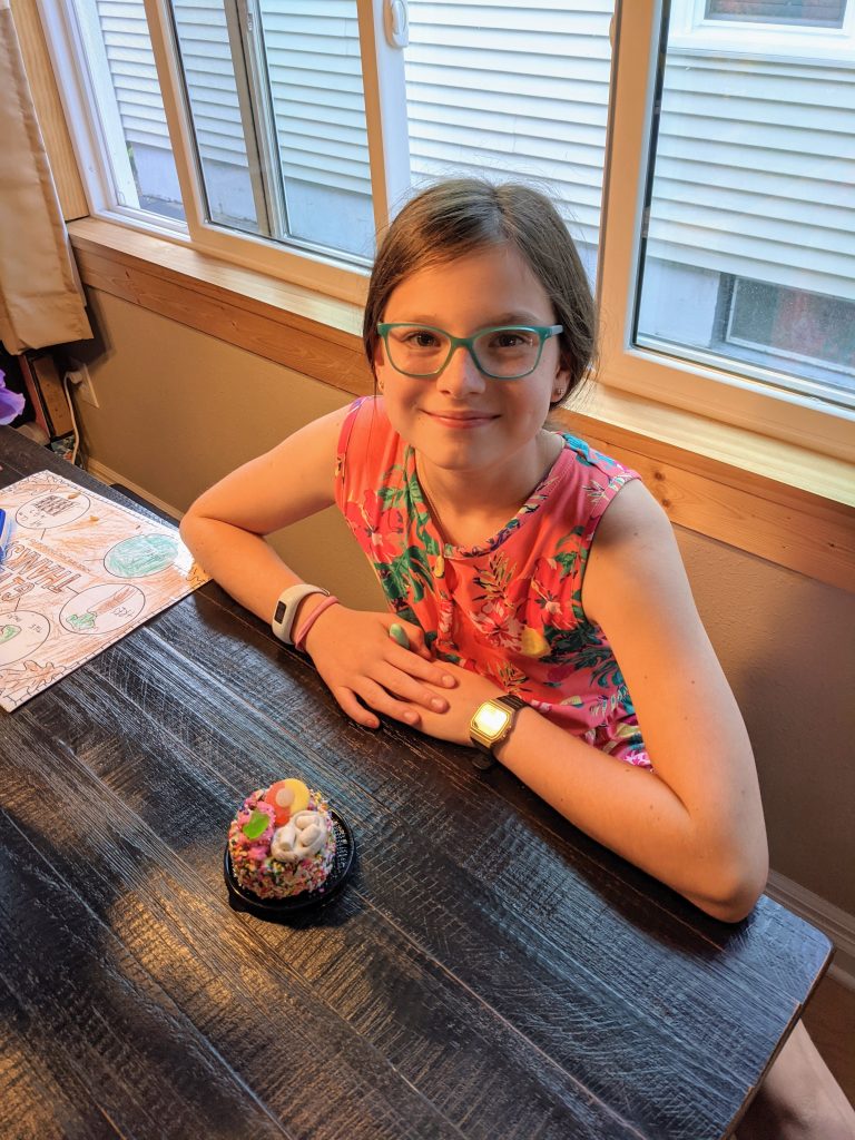 She loves reading, stickers, playing with the friends on the block (she and a couple of the neighbor girls her age just started a jewelry-making operation, and she is having so much fun organizing, designing, and creating little rings and stuff for the younger kids. she even gets paid from the profits!), doing their crafting and building game on their tablets with Lana and Morrison, dogs and babies, and just being a kid. She’s excited for middle school next year even though it’s giving me anxiety ;), and she did great getting back into swim lessons this summer. She and Lana both passed level 4 after just 1 session.