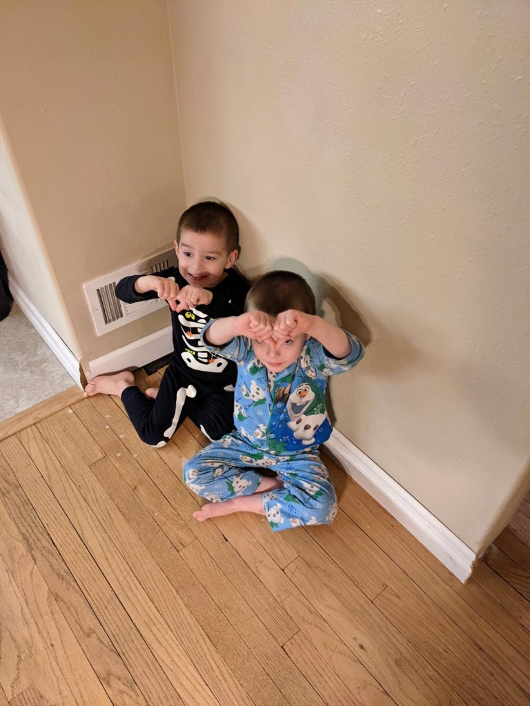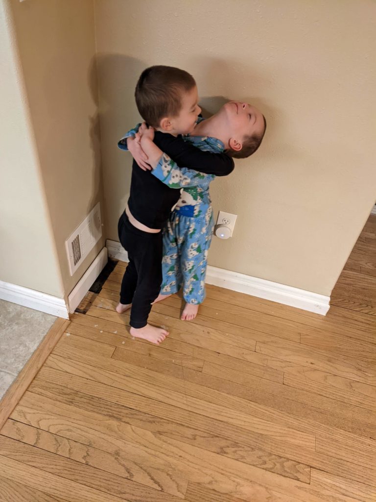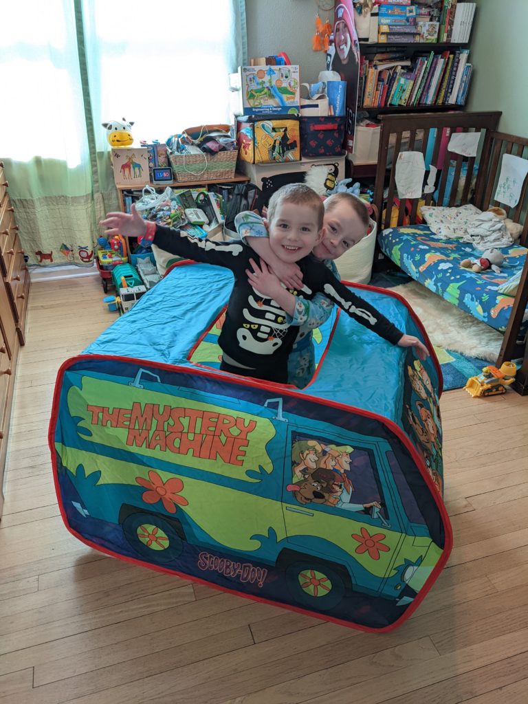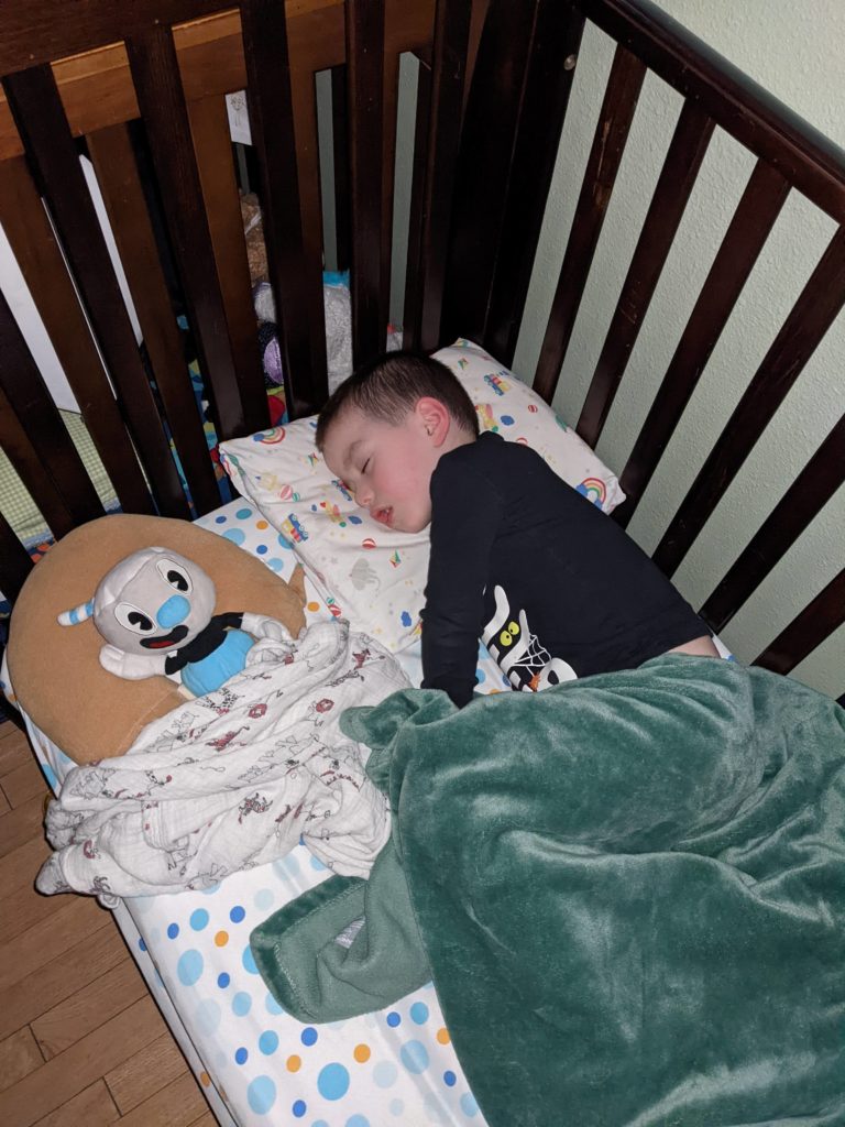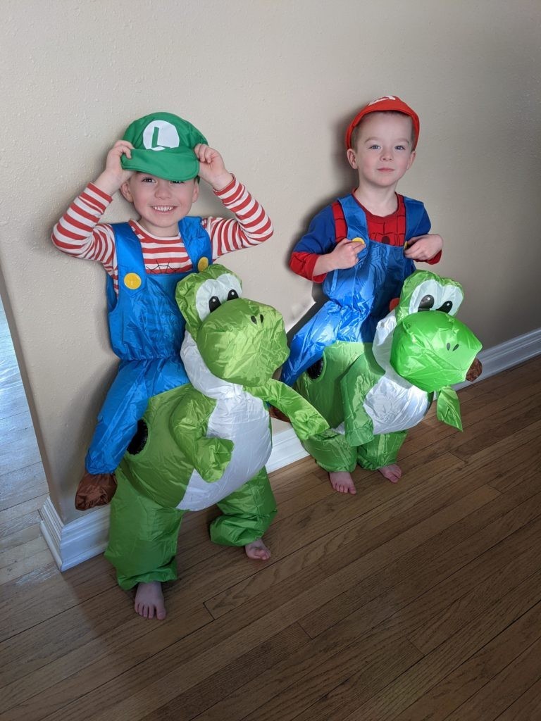Nat loves Cuphead, Mario, his snuggies blanket and stuffed puppy Boo, being a kitty, and the color red. Avit loves Mugman, Luigi, his snuggies blanket, running around like a crazy person, and the colors yellow and blue. For their birthday dinner, Nat requested macaroni and cheese and Avit requested cocktail weinies and broccoli. They crack me up. They also live in their pj’s, just like Morrison used to before he started school. I love it.