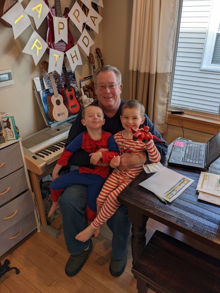 They are funny, smart, crazy, fast, energetic, loving, and I swear I can see them growing taller by the day. They got an extra-special week surrounding their birthday this year – Grandpa came to town for a couple days, then Grandma came right after him. Lots of grandparent fun for these guys!