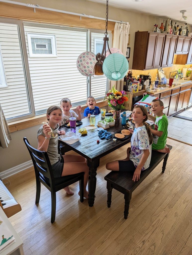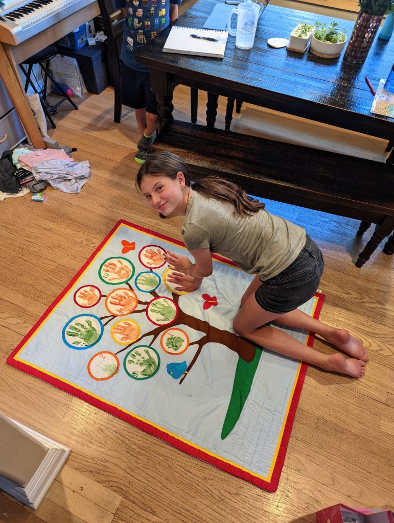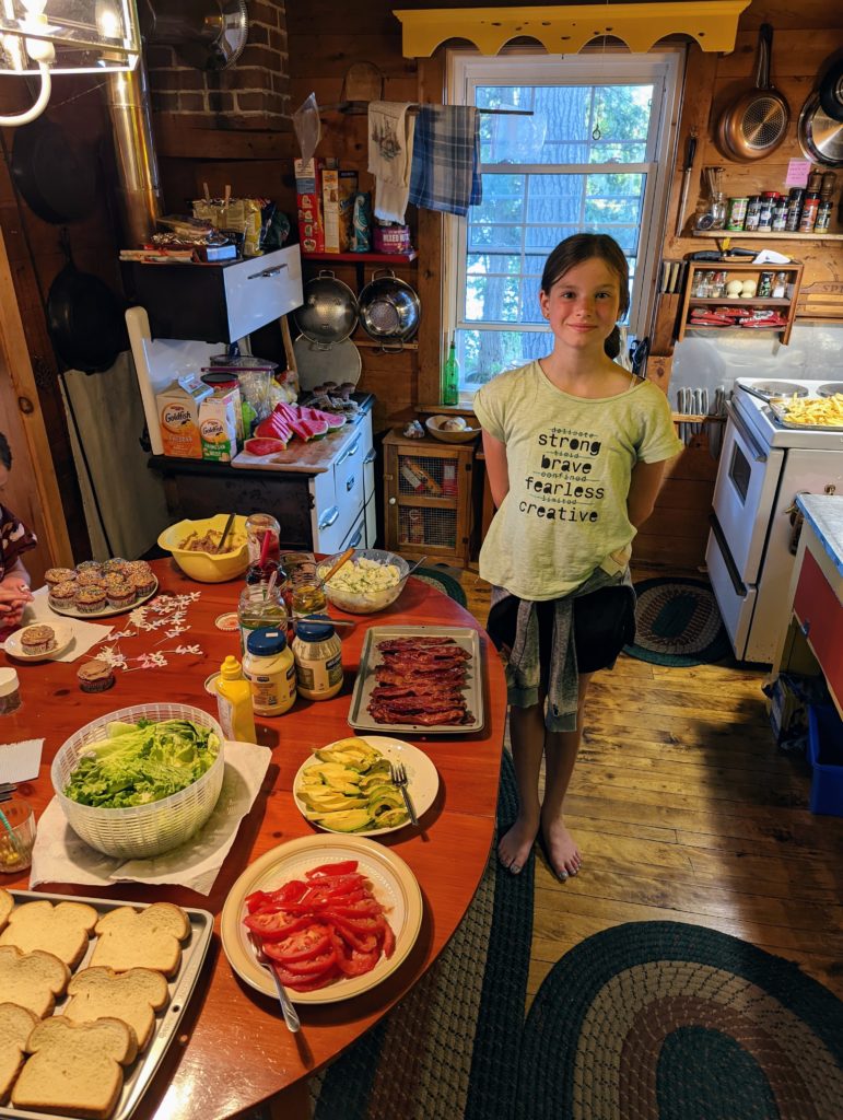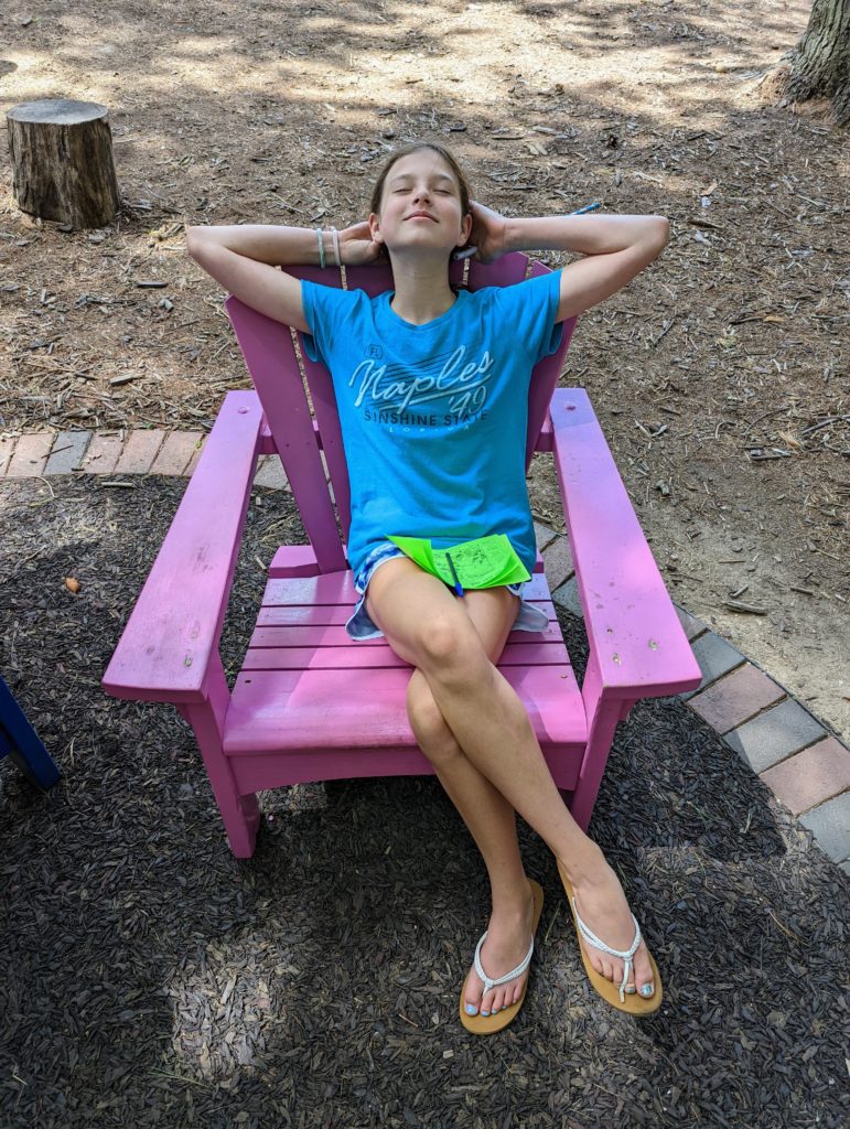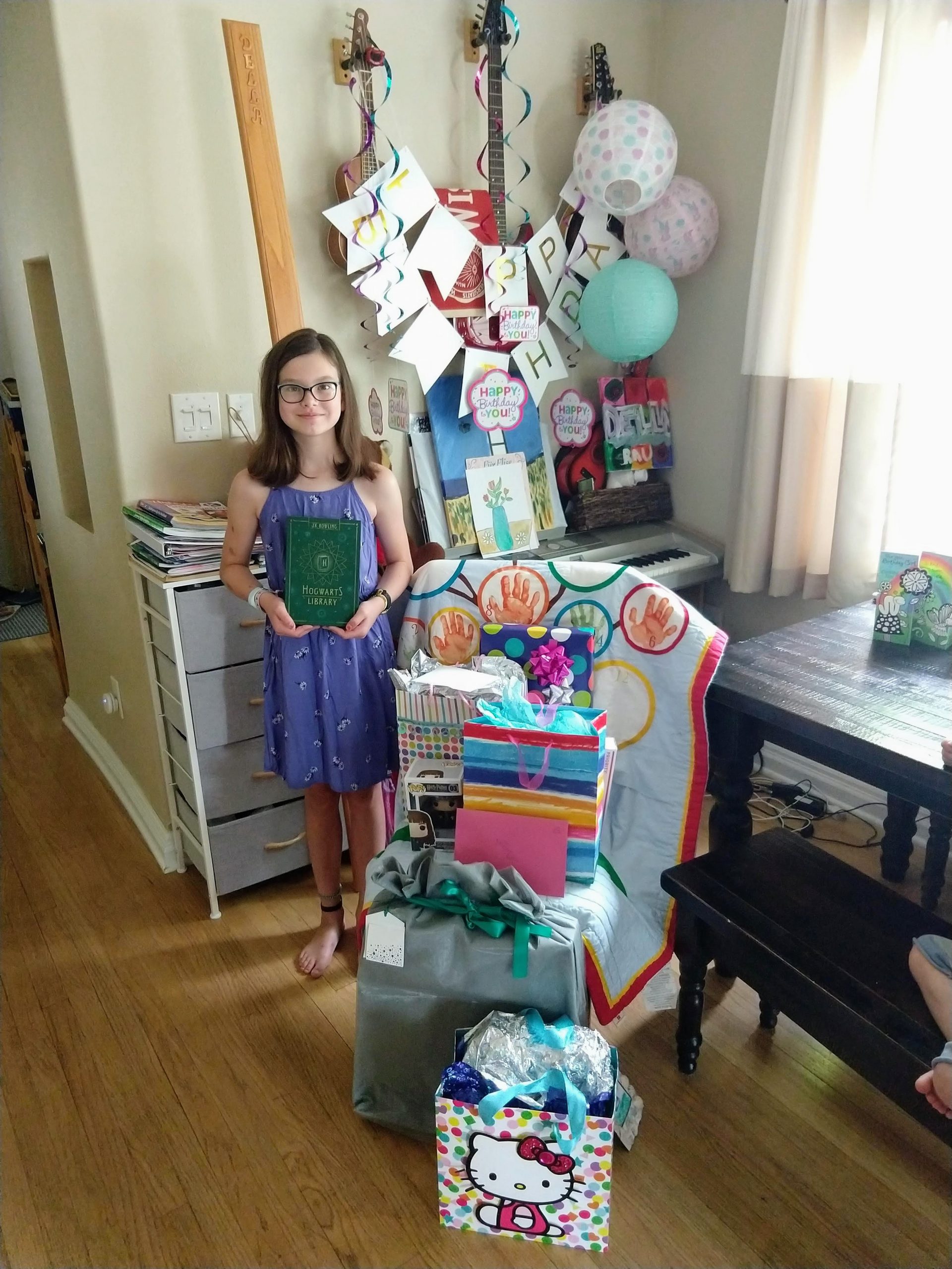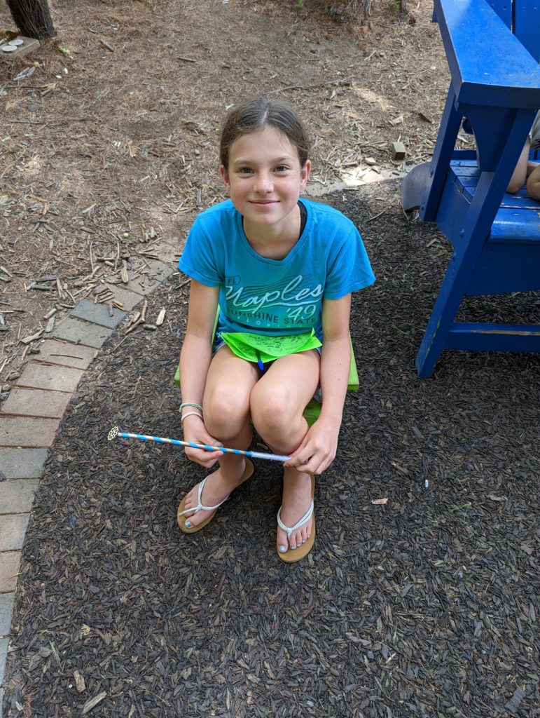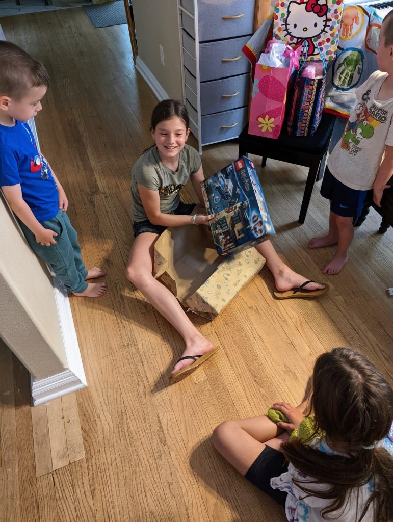 She loves playing outside with her siblings and the block friends, the little walking “field trips” that same group has gone on for the first time this summer, swimming, tubing, riding her bike, watching souped-up crafting shows with Lana and Morrison on YouTube, Harry Potter, Legos, reading, earrings, mystery nights at the museum, making quizzes for us on her tablet, Pete’s Pops, and sparkling water. Her favorite color is blue, and her favorite food is BLTs.