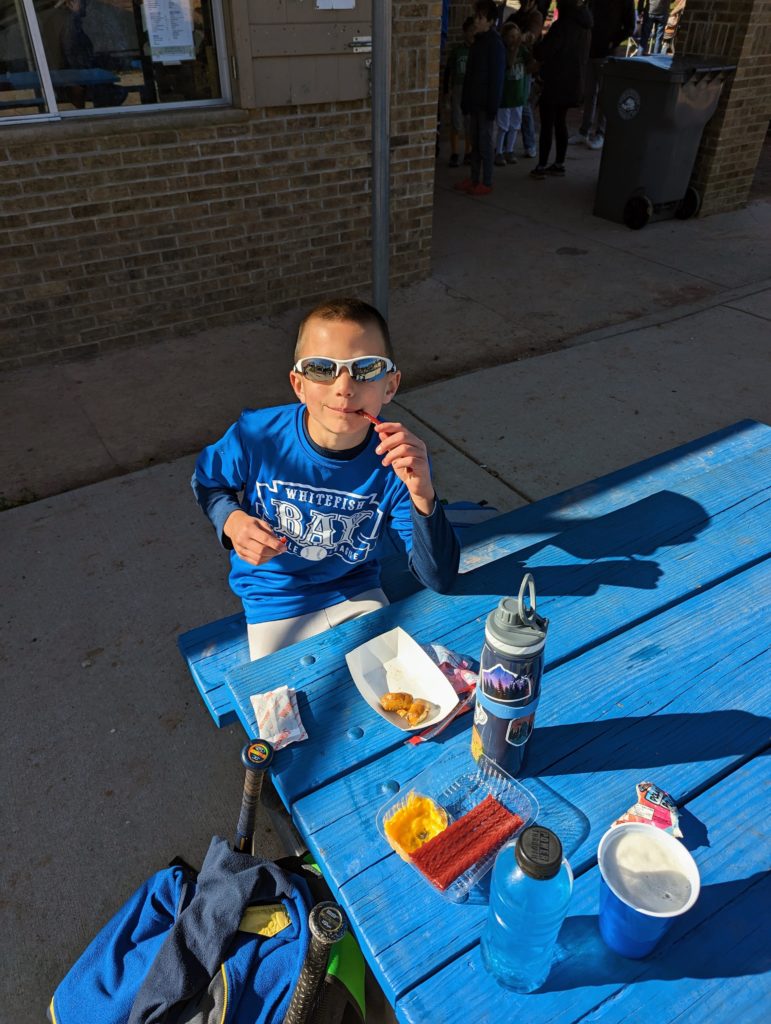 So that was a fun and very unexpected end to his first Fall Ball season. The playoffs were a one-day, three one-hour-games event. They won their first one and I was like oh fun, we’ll just stay up here and I’ll get him a cheeseburger for lunch from the ballpark grill (which he’d been wanting all year!), then we’ll see what happens in game #2. Then they won that one, too! By this time I saw his Pee Wees coach and told him how they were doing and he came over to cheer Morrison on during his at bat, which totally made Morrison’s day. Then they tapped a keg of local beer for all the parents, so that was awesome, too. And then they won the second game! I was giving Ryan the play-by-play the whole time, and he got too superstitious so said he’d better not come up to the park so he didn’t jinx it. But by the end of game #3, when it looked like they might actually win the thing, he hopped on his ebike and got up there as fast as he could. He arrived just in time to see them win it all! I don’t think we’ve ever seen Morrison smile so big and so hard. They got medals, they got ice cream, and his young life was made.