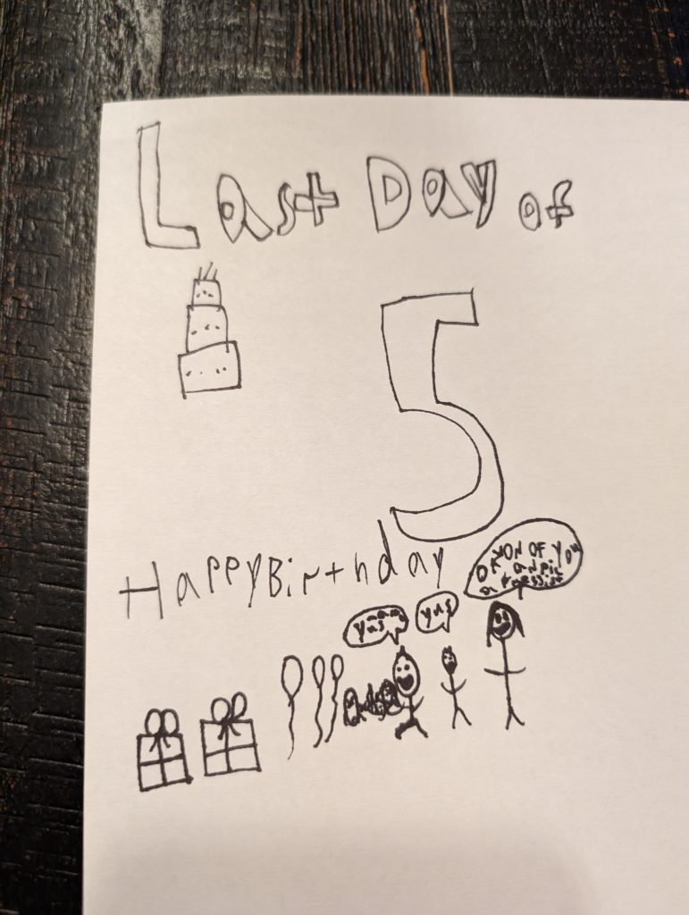 Avit is the perfect complement to Mario and Cuphead with his Luigi and Mugman, but is much more into art and creating than video games. He’ll still play them, but he’ll grab a piece of paper and start creating first. He loves cocktail weinies, cuties, pancakes, and his favorite color is yellow. I don’t think he’s going to be nearly the athlete that Nat will be, but his artistic ability will for sure rival, if not surpass, Lana’s. The stuff he draws and thinks to create already is far beyond what she was doing at age 6. It’s crazy and mesmerizing and amazing. I told those 2 they should open some sort of art gallery or shop together someday. It would be incredible.