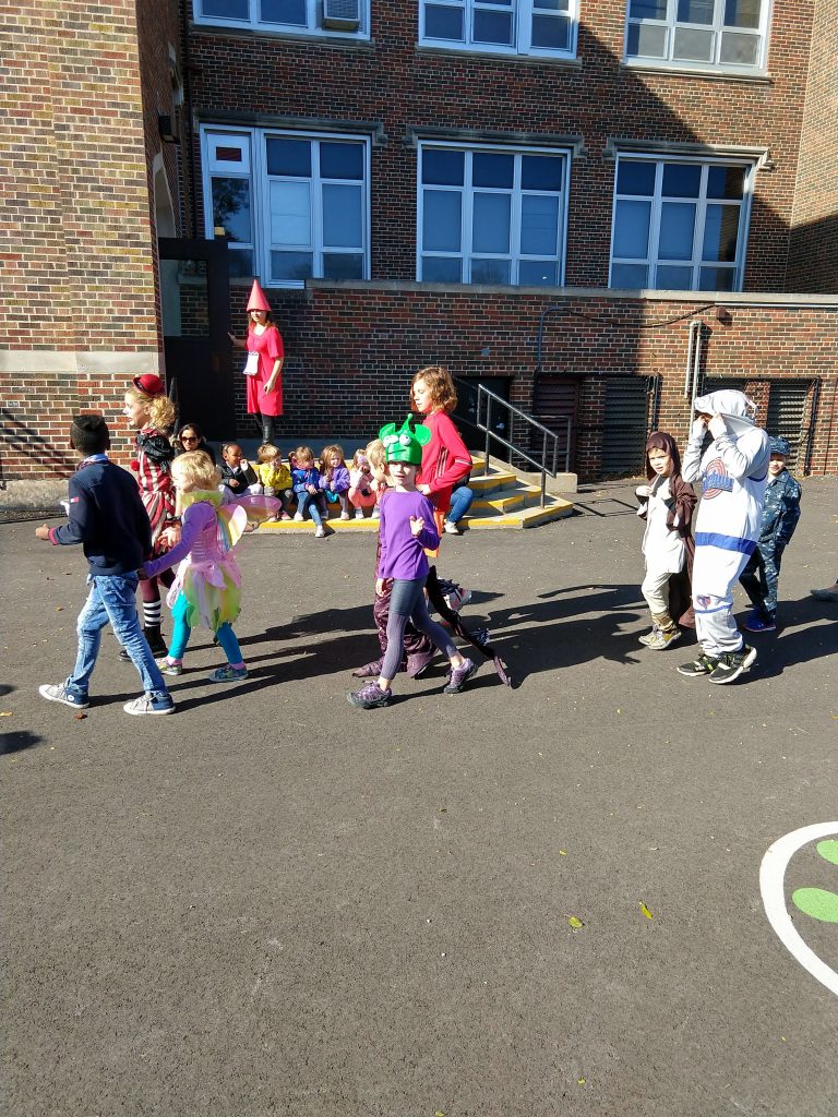 The morning of the very first day ended up being stormy and rainy, so all grades except K4 were able to line up inside. Fortunately they were split up between areas so the entire school didn’t try to jam into one place, and double fortunately the girls lined up in the same area. So their lines ended up being closer together than they usually are, and I was able to wave them both off through their lines the entire way. I even got to watch Lana go all the way into her classroom before heading back out to get Morrison for his start.