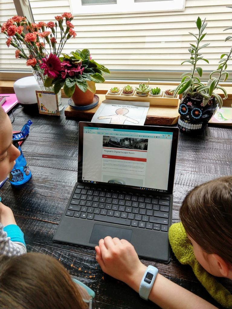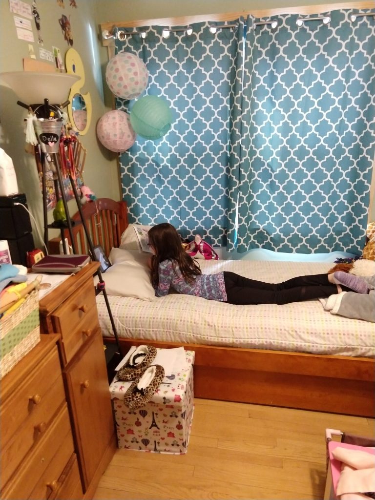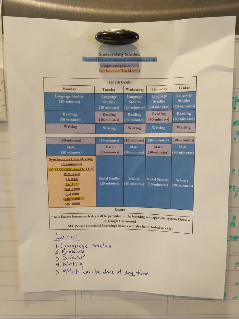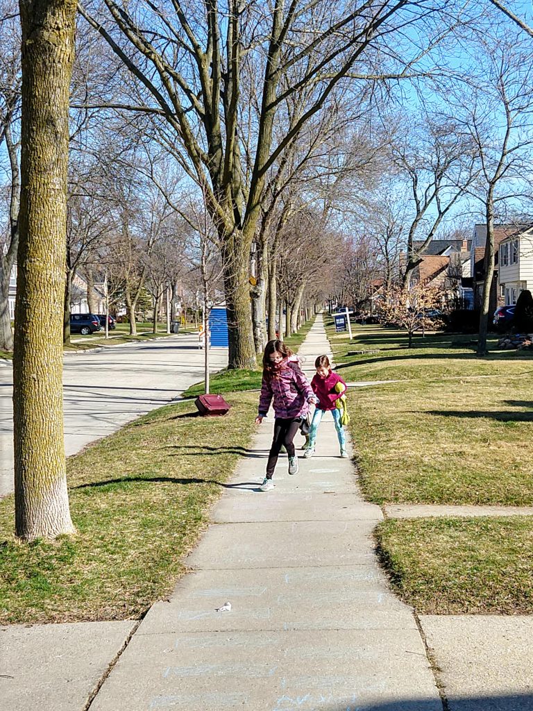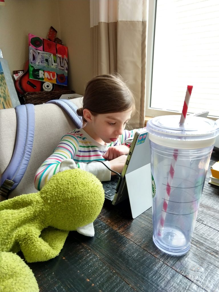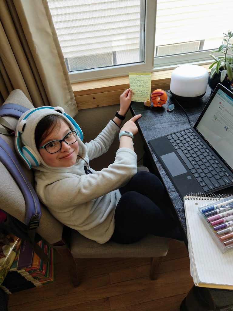 Every morning will now start with lessons for the day given to the kids by their teachers in their respective online learning platforms. They include social studies, reading, science, writing, math, P.E., art, music, guidance, and maybe Spanish. They get videos with mini-lessons from their teachers, other videos to watch, audio books to follow along with, then numerous activities to complete that correspond to each lesson. One really nice thing is that the teachers from both the girls’ grades are collaborating with all the other teachers from those grades to give the lessons. So they get to learn from all the teachers now, not just their own. They were both excited to see this.
