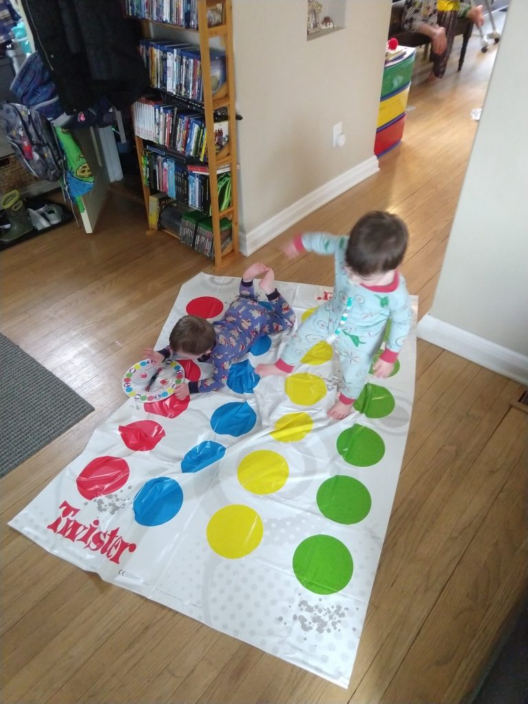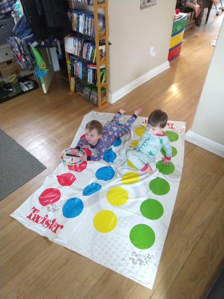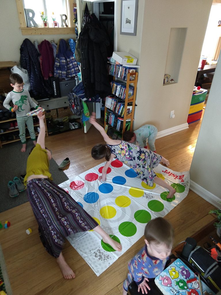 P.E. class – Twister. There’s one picture I included simply because Avit is the only thing not blurry in it, when it’s usually the opposite!