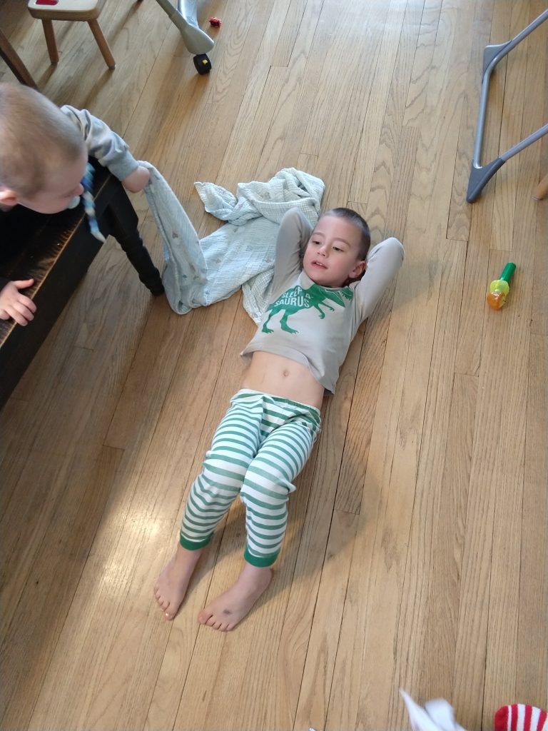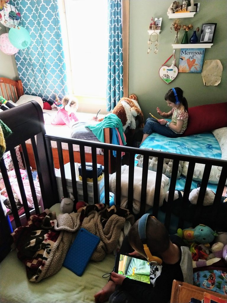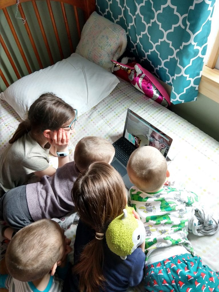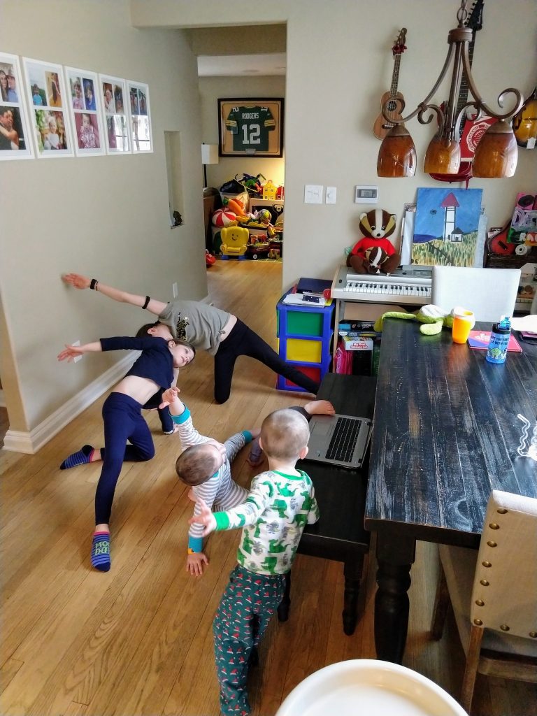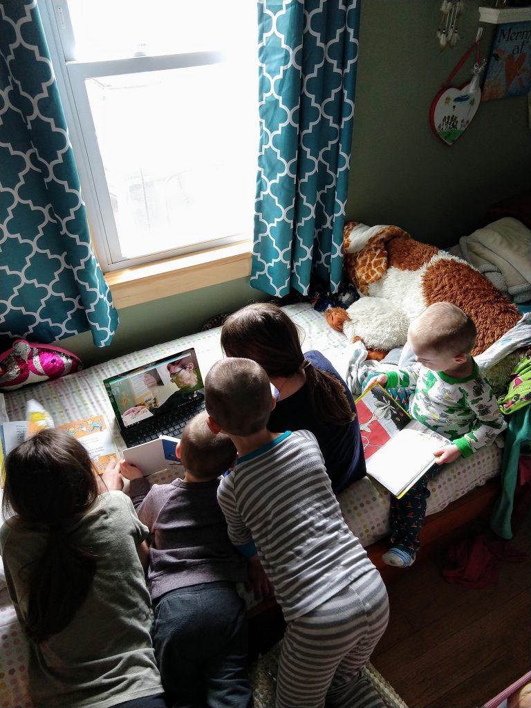 I asked the big 3 last night how they felt about not being able to go back to school and having to be home all the time. They said it wasn’t that bad and they like doing school online, but Della said she does miss seeing everyone. I asked if there was anything they felt was bad about all of this, and they said no, it’s fine for them. Morrison of course said he has a bad thing, he gets bored, but see above. I’m making a very conscious effort to ensure they know it’s completely ok and normal to feel very weird and mixed up and even sad about this whole situation. It’s something none of us have ever had to deal with, and I can only imagine what it’s like being a kid right now: All of a sudden your teachers tell you you won’t be coming back to school for a little while, which probably feels like an exciting surprise vacation break, then after a certain point you get bored because you can’t go see your friends or play with anyone outside but your siblings (at least these kids have plenty of those!), it’s hard to understand that you can’t just go see and hug family like you always do, we can’t just go places anymore, you kind of get used to me giving you mini-lessons at home on topics that are new and different from what you usually do at school, then suddenly you have to sit at a computer all morning and do real school lessons but at home. Shit. I’d get antsy and all mixed up, too. So I feel very strongly that I need to keep an eye on their emotions more than anything right now. They really are doing an excellent job adapting through all this with basically no push-back at all, so I make sure to tell them how proud we are of them and how great they’re doing.