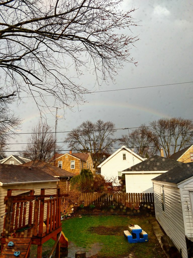 A thunderstorm rolled in, so we quickly cleaned everything up and got inside just before it started pouring and hailing! A beautiful full rainbow came out afterward.
