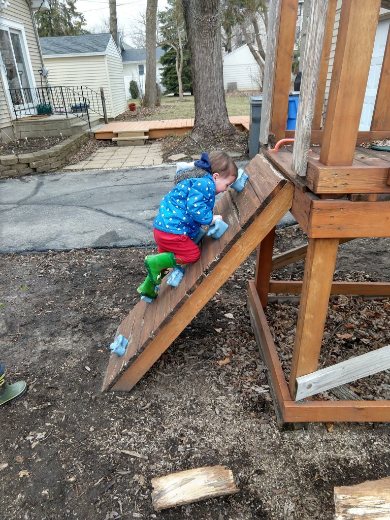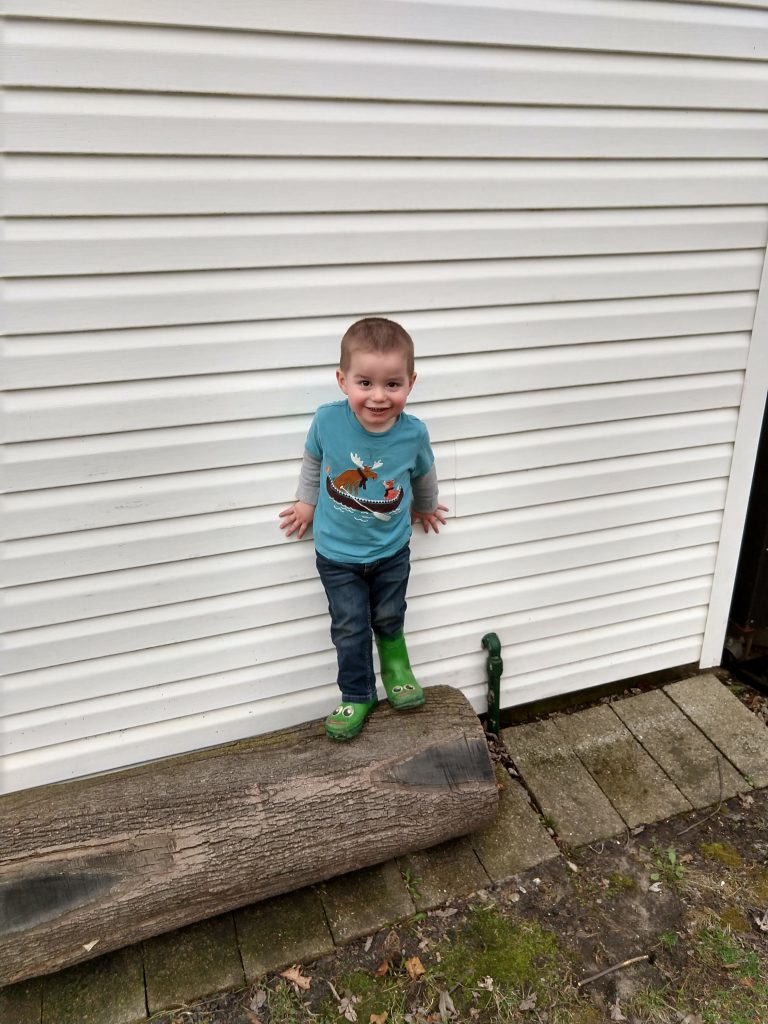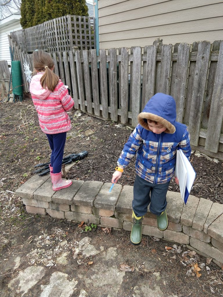 Outdoor scavenger hunt while I did some cleaning. The twins tried to play, too, but it’s still way too muddy for them.
