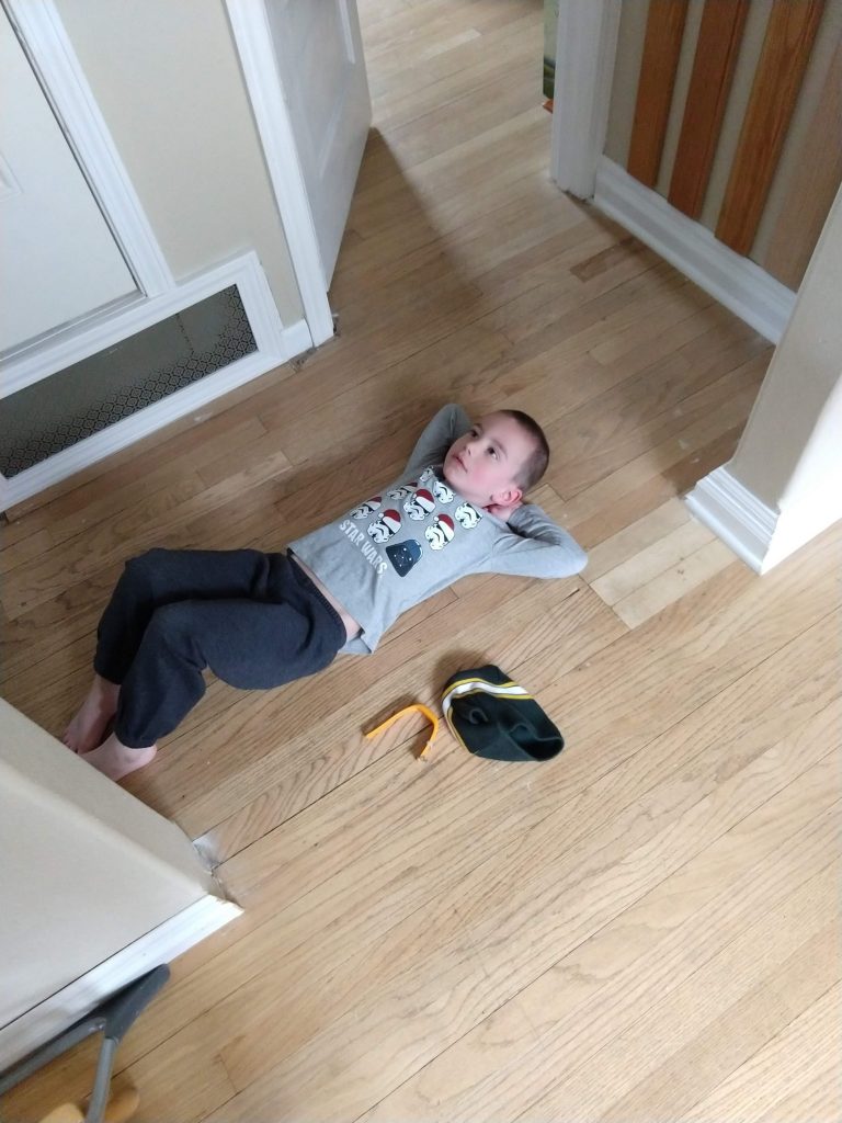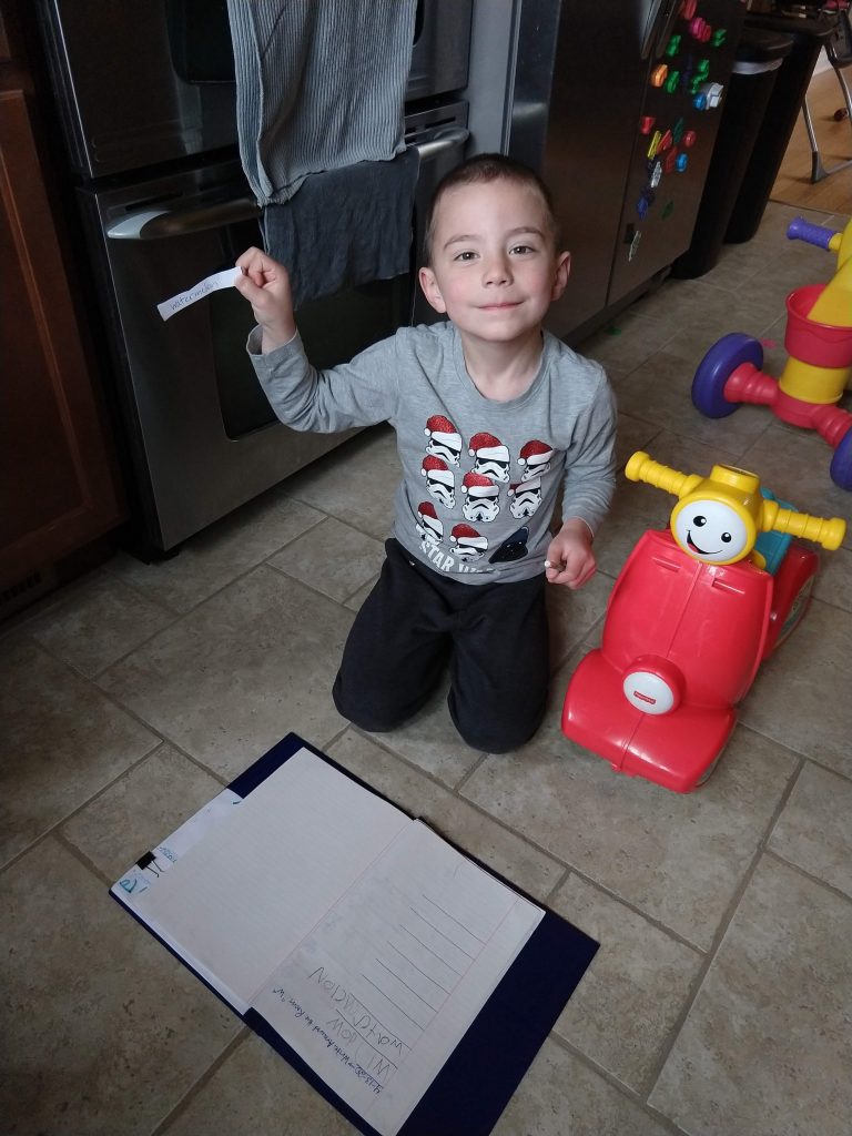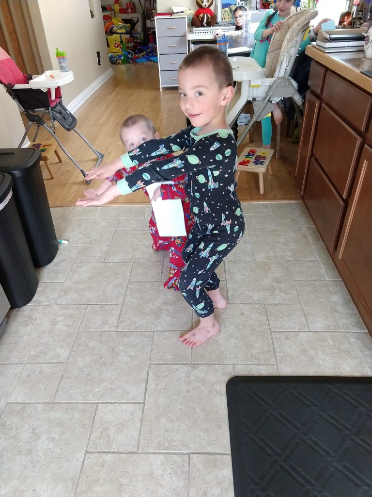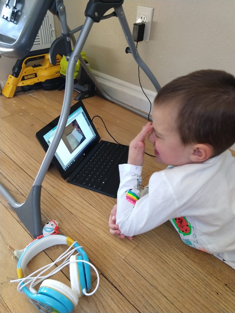 Morrison was the helper today! When they’re in school, the helper gets to do things like turn on/off the lights, do the weather and calendar, choose songs, etc. So his teachers sent out an email asking what the kids miss most about school and what counting song they want when they’re the helper – M said he misses being the helper and chose the Star Wars counting song.