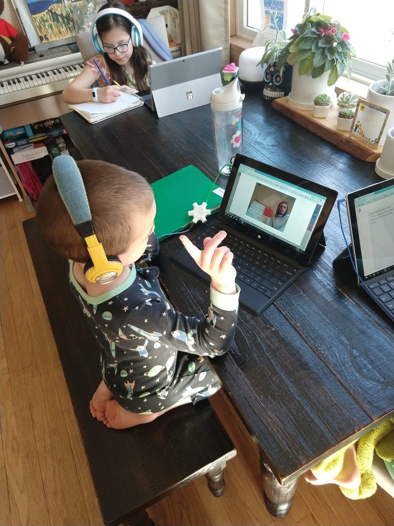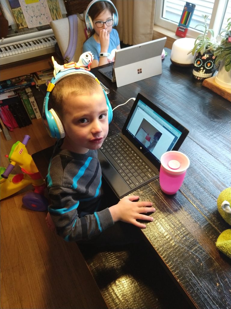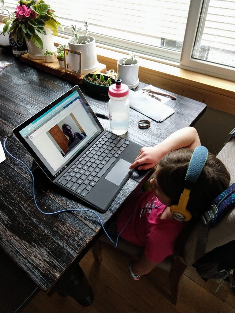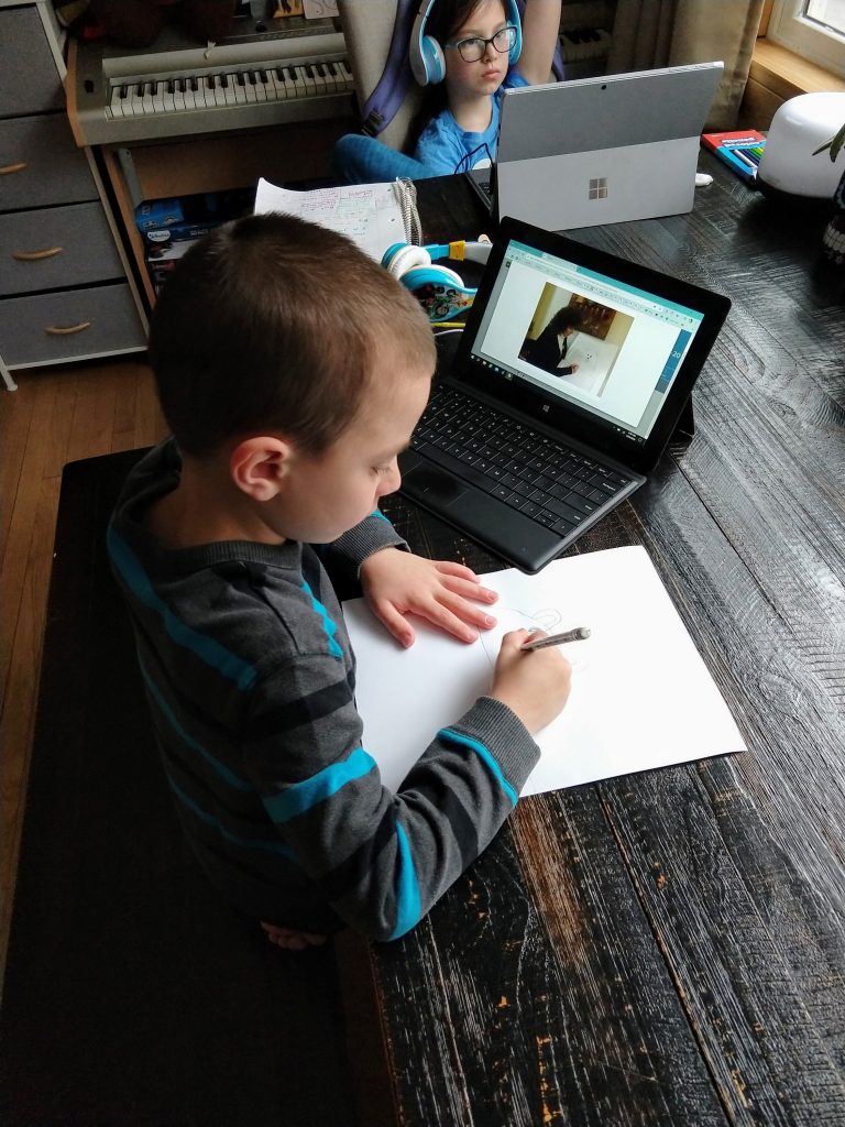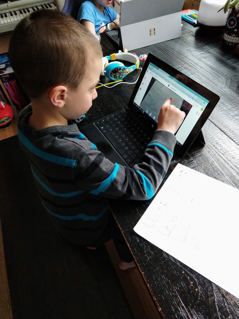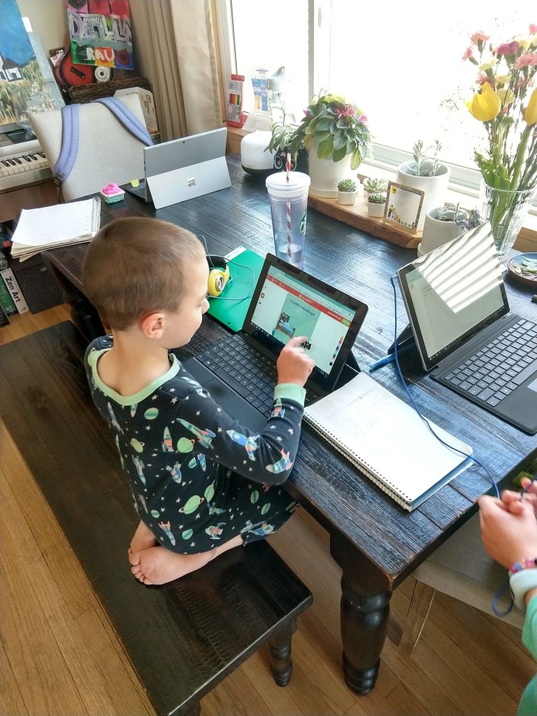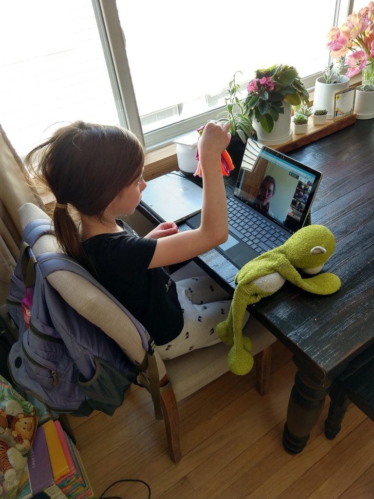 They all have half-hour, in-person video meetings with their classes on Mondays, which are awesome. This week they all got to talk about fun things they’ve been doing so far at home while we’ve been away from school.