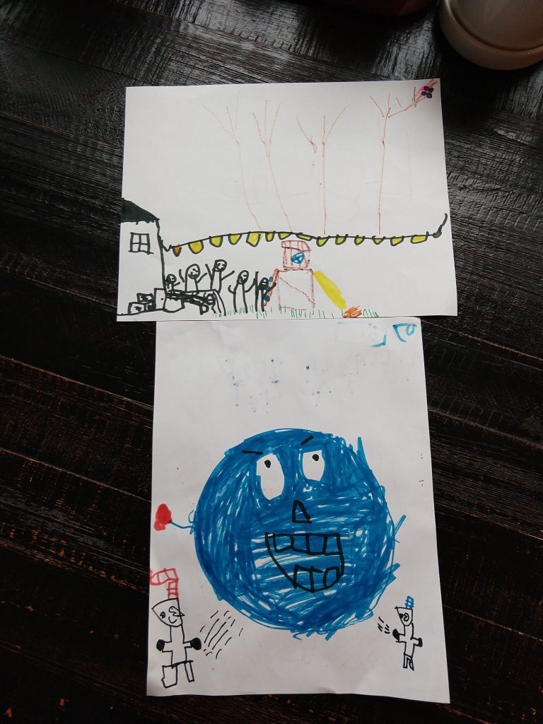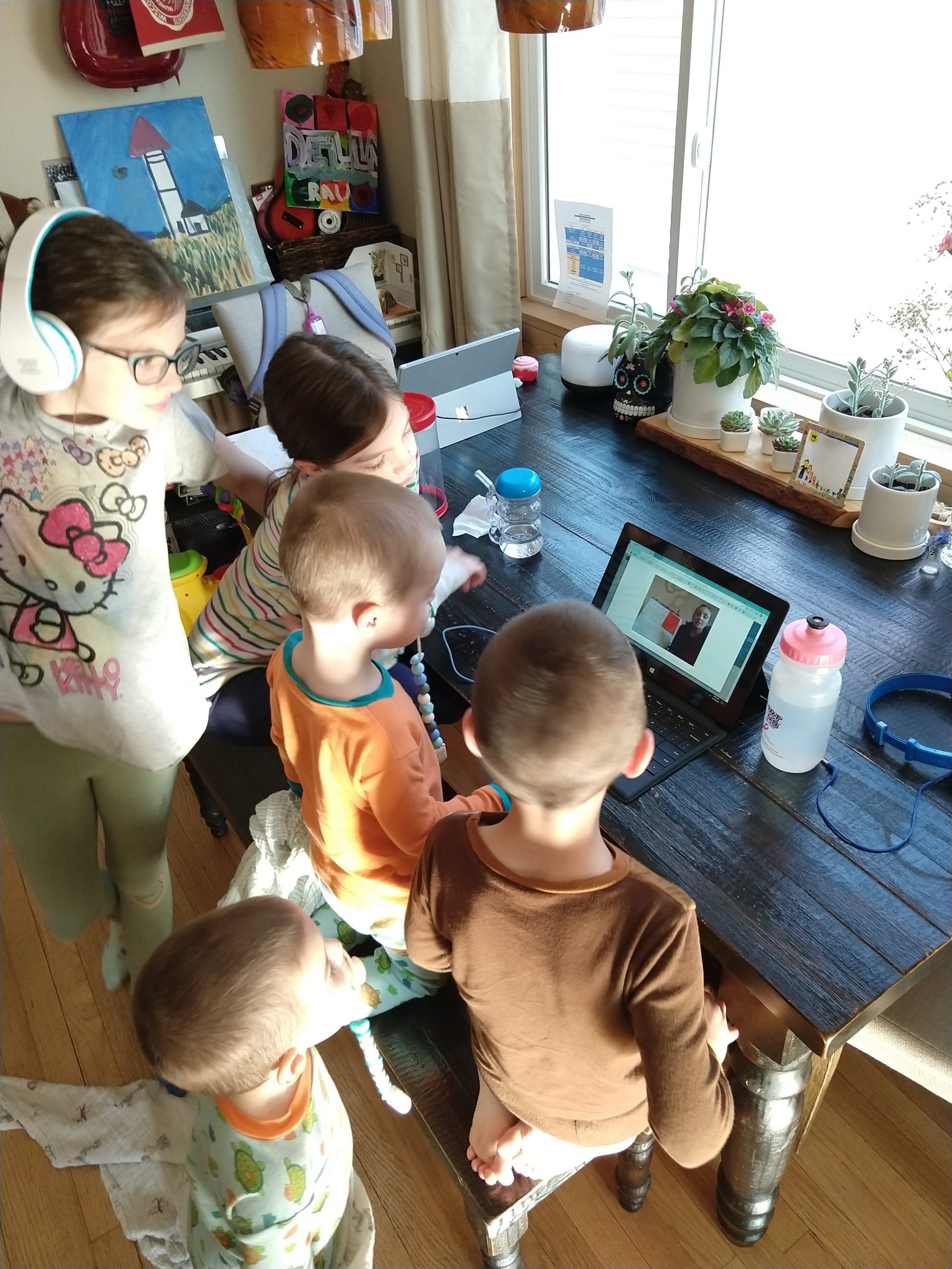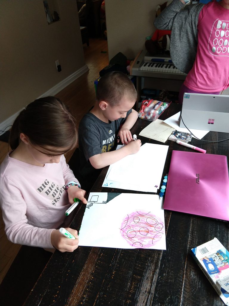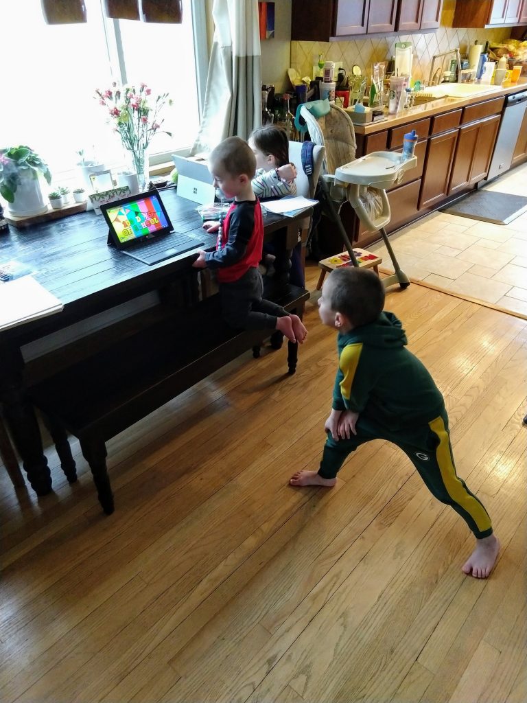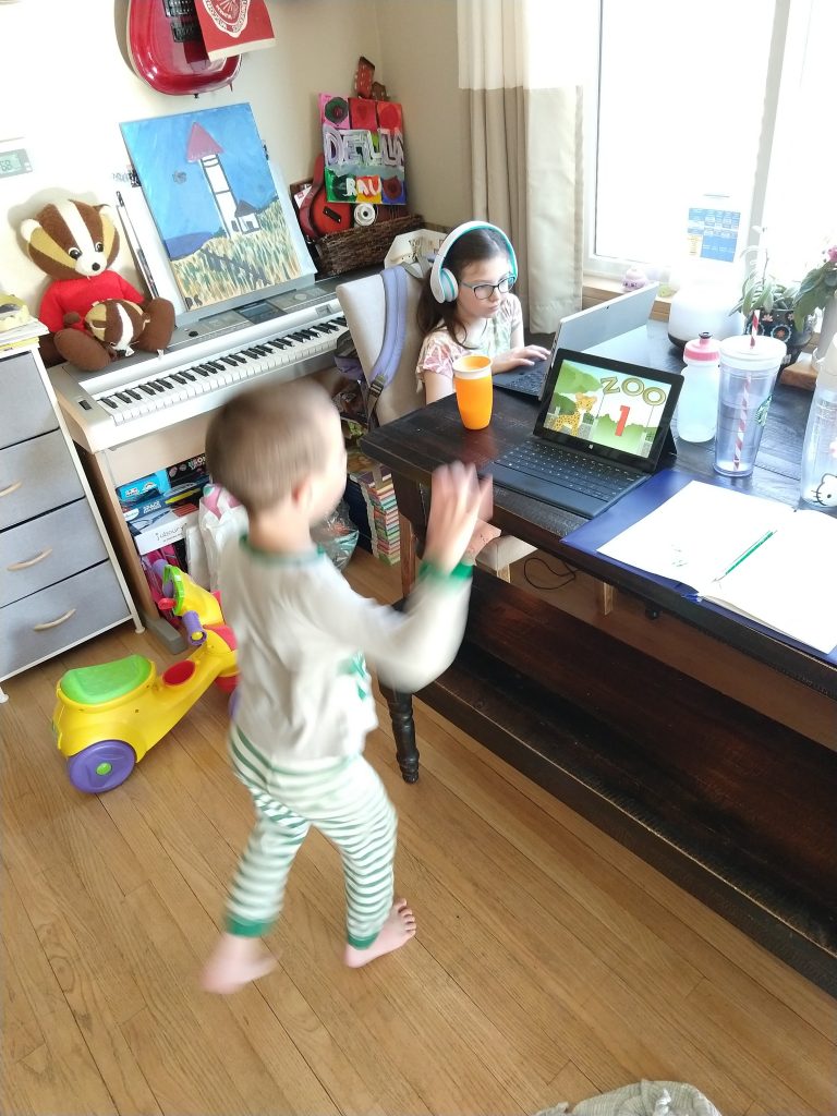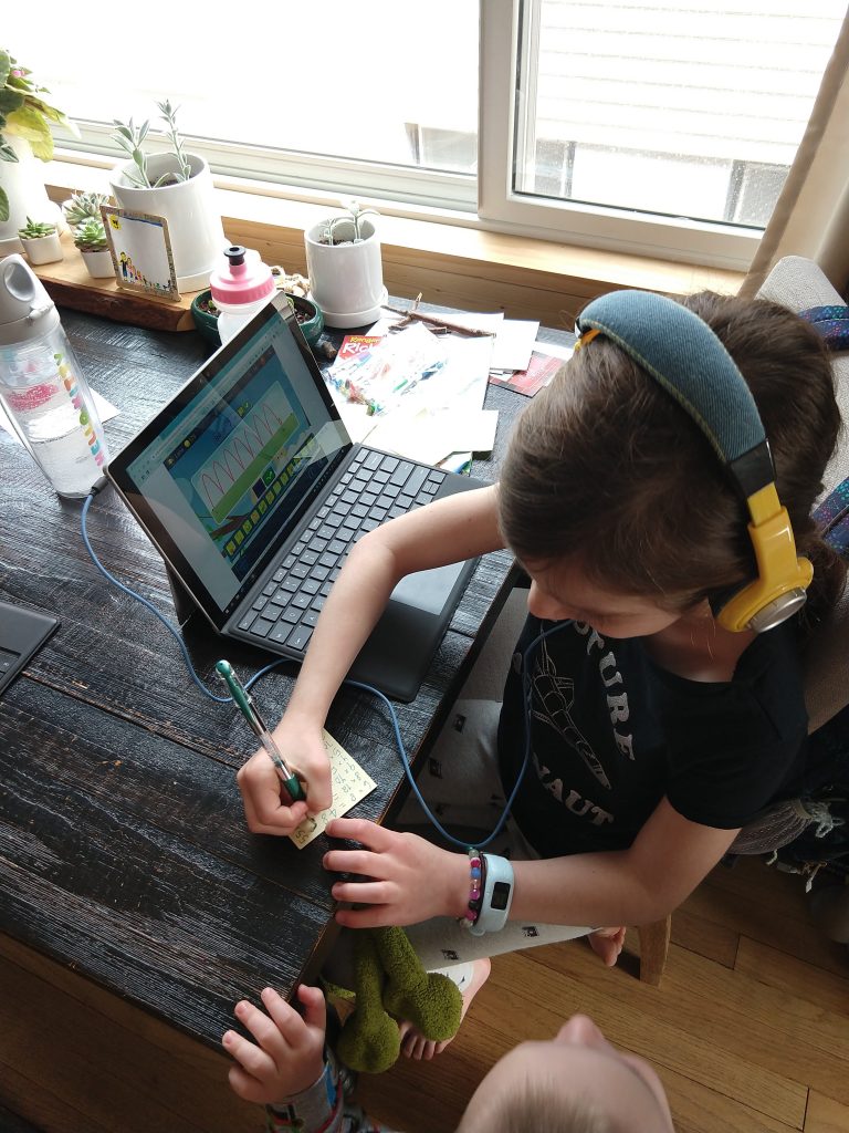 They all have half-hour, in-person video meetings with their classes on Mondays, which are awesome. This week they all got to talk about fun things they’ve been doing so far at home while we’ve been away from school.