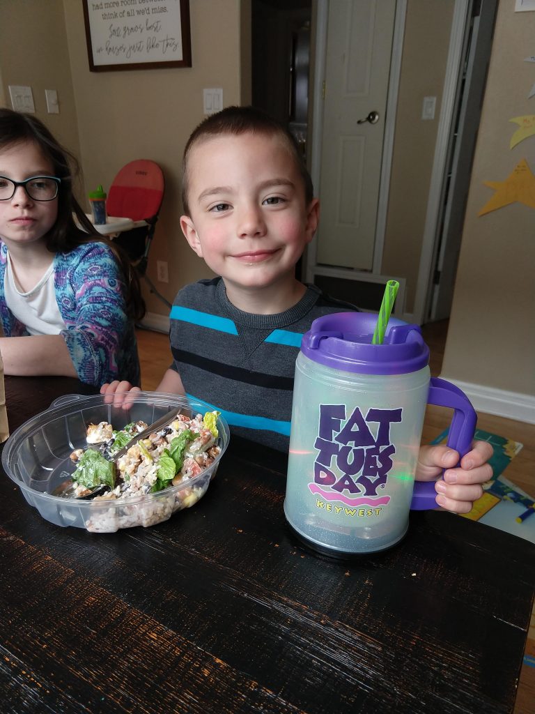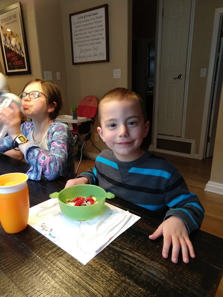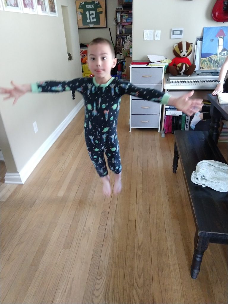 It’s Morrison’s Star Student day! He made a smiley face with his pancakes for a good breakfast to start the day, then he couldn’t wait for their online class meeting to get to answer his classmates’ questions. He got to talk to quite a few friends, including all the teachers, and I think it was almost more fun and special because we got to do it all at home together than when we go to the classroom for it. Then he chose Qdoba for his “restaurant” lunch, and that was a hit all around. He got to play outside, watch Ryan play Cuphead, play Temple Run on his tablet, and generally do everything fun that he wanted all day. I hope it was as special for him as possible. He seemed very happy and even told me he loved me out of the blue at lunch. Man, do I love that kid!