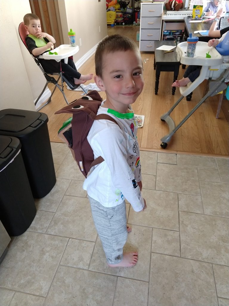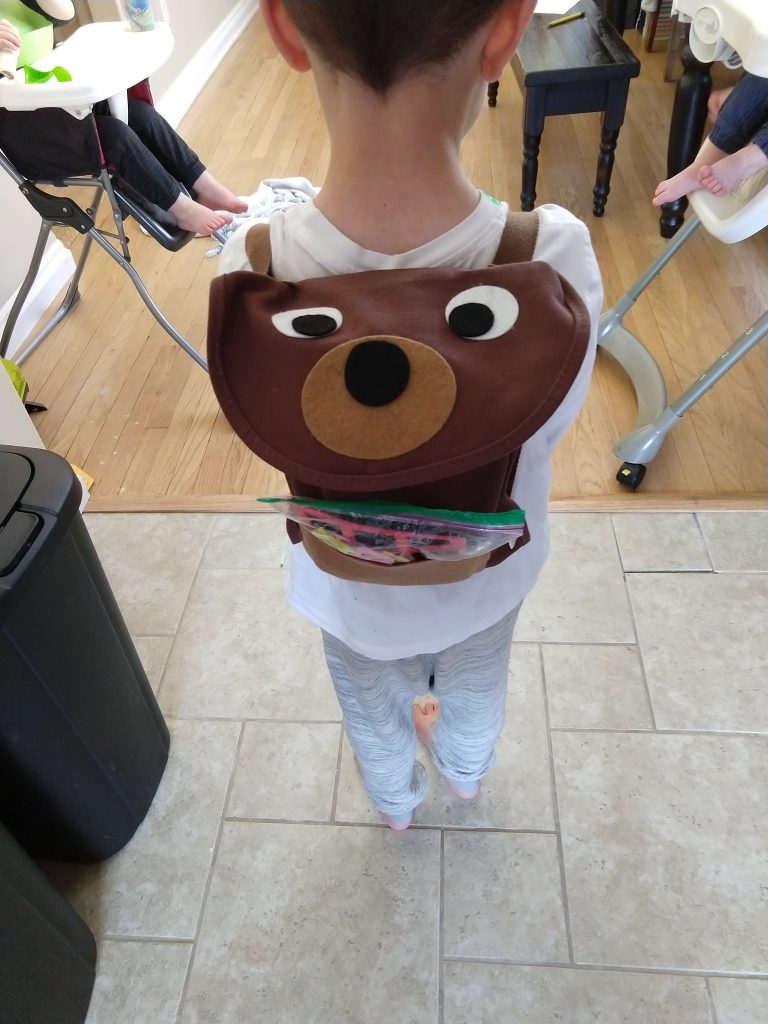 Morrison filled a little bear backpack he made with a bunch of random stuff right before lunch and declared he was going to Colorado. Of course Avit wanted to go, too.