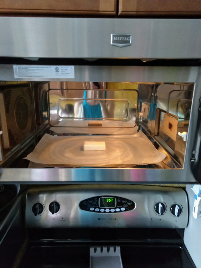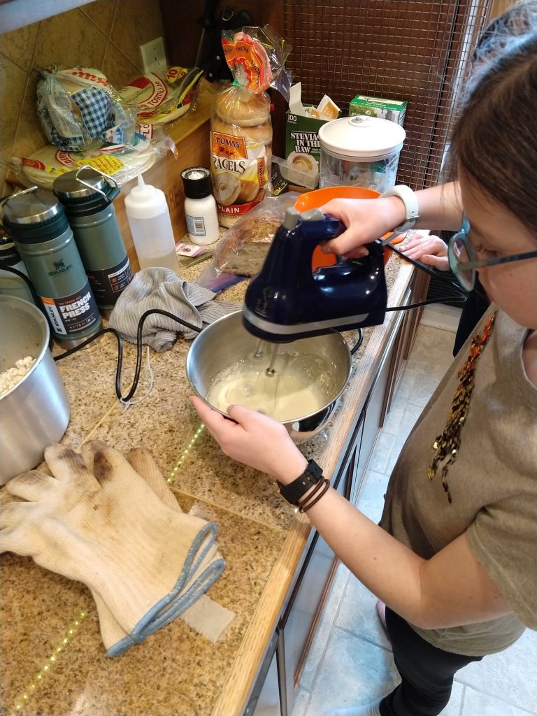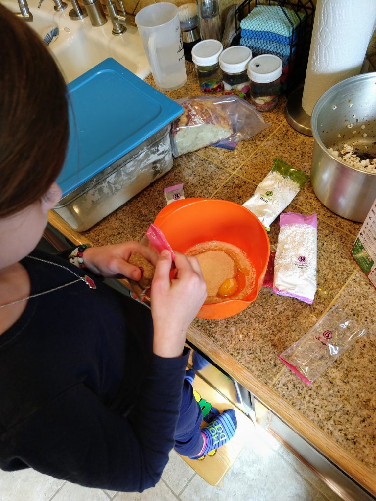 Della baked us a delicious salted caramel lava cake for dessert tonight. I was going to do it because it’s the easiest thing possible – one of those cakes in a bag where all you do is pour it into the pan – but she loves to bake, so I said have at it! It was delicious, and she was proud.