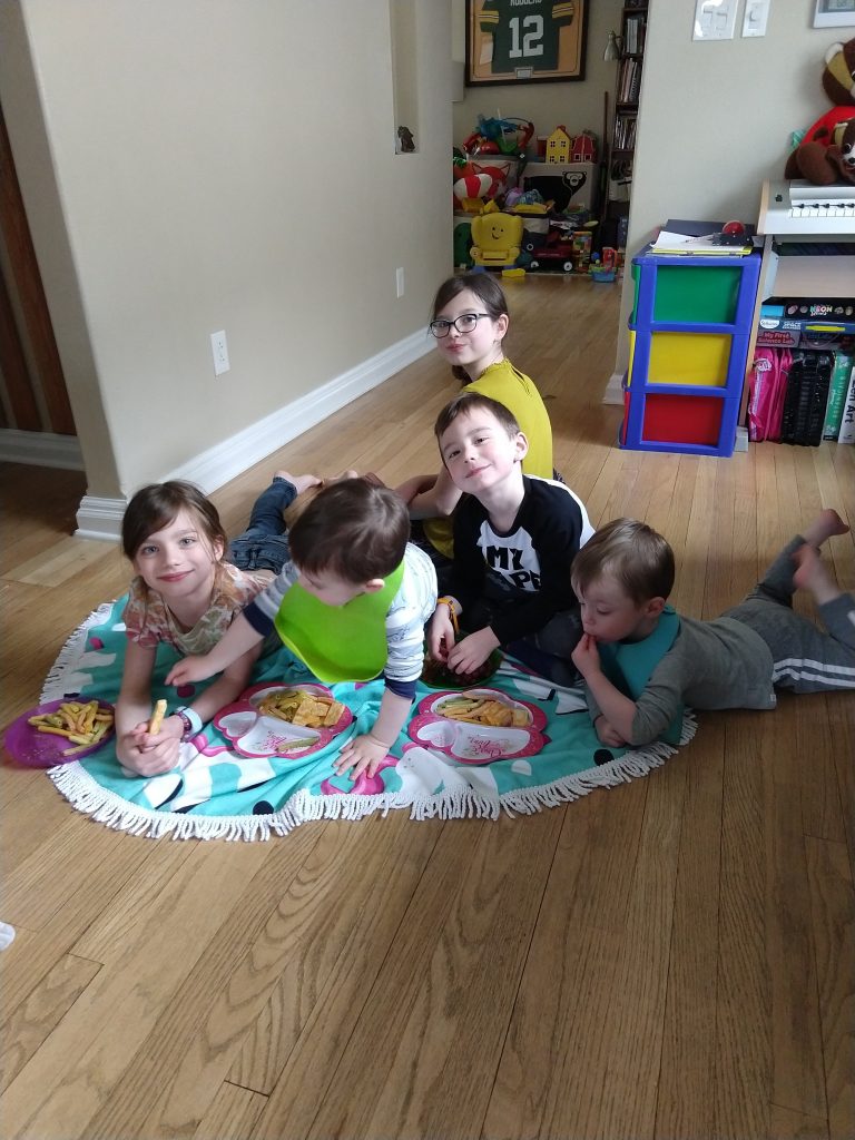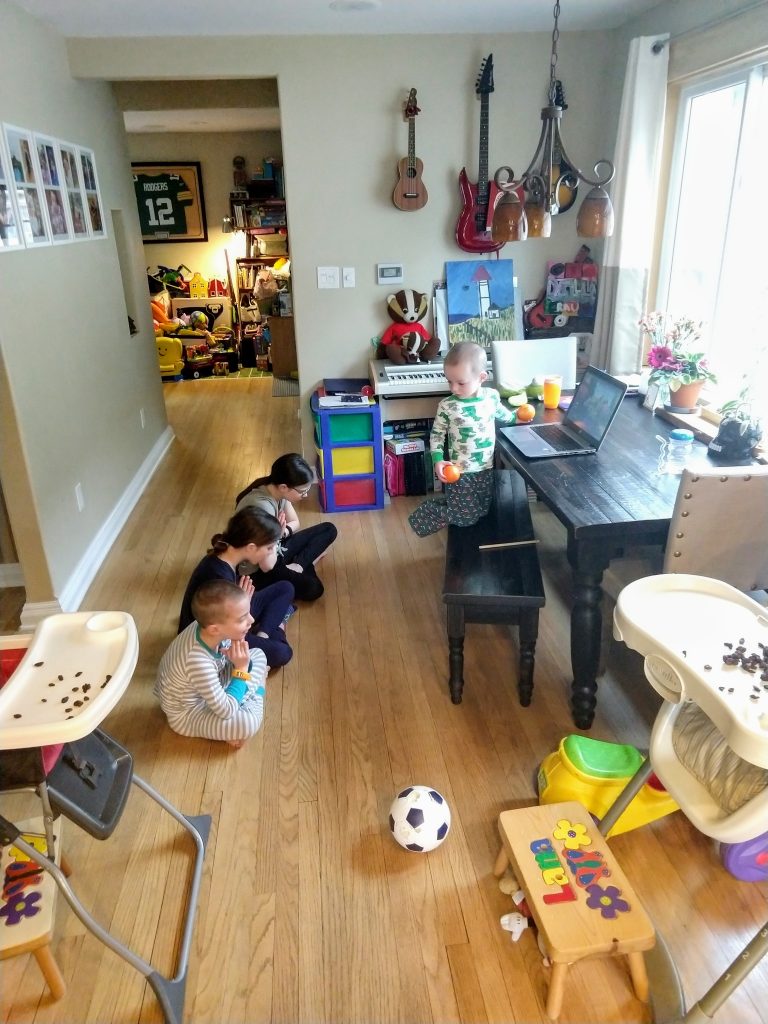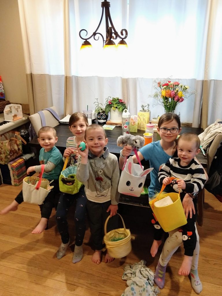 I’ll throw in a couple pictures from Easter, since it technically started this week off, and I actually got a picture of all 5 Goonies smiling! It must’ve been a cosmic miracle, since the twins’ behavior quickly deteriorated from there. 😀 I was able to watch the Andrea Bocelli concert live streamed from the empty Duomo in Milan, though, which was spectacular and brought me to tears.