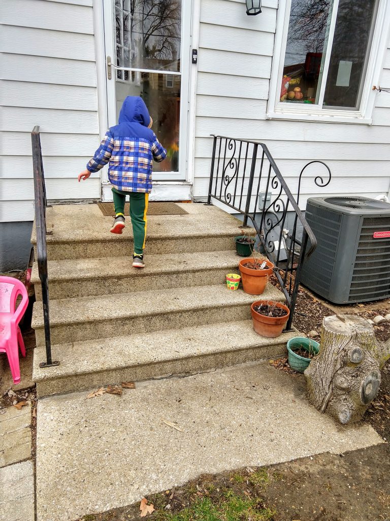 Even though it’s cold and windy today (with an early evening mini-blizzard?!), I sent all the kids outside after the twins’ naps for some outdoor activity. I can tell they’re all getting a little cabin feverish. M got really sad this morning after I asked him to be quiet and calm down for the eleventy billionth time, so we talked through it and I said whenever you start feeling all wound up and silly or sad inside because of all this just tell me – you can go outside and run around for as long as you need. So he did! But they still needed to go out again this afternoon! He’s definitely the most emotional of the bunch, and I try to remember that before I get upset with him.