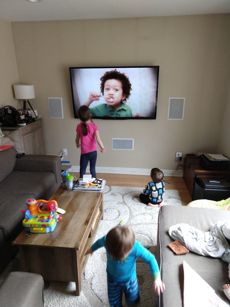 Alphablocks for L and M, Raz Kids and online typing club for D, Little Baby Bum for the twins for about 45 minutes while I did my workout