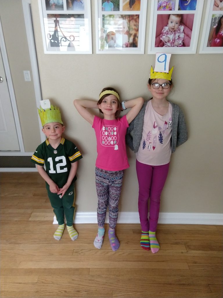 Morrison was bouncing-off-the-walls excited to do his Star Student video all day today, but Ryan had a call during the twins’ nap this afternoon so we had to wait all day until after they went to bed tonight and were fully asleep. But he did so great!! I cut out all the stars this morning, and the girls helped him decorate them and write all the intro words. Since we don’t have any posterboard, he taped all the stars on the dining room wall under all of our family pictures, so he could show all the members of our family and his stars with favorites, personal info, etc., all in one spot. It actually worked out great, and he had so much fun!! I’m so thankful he still gets to have this special piece of K4 even when we’re not at school.