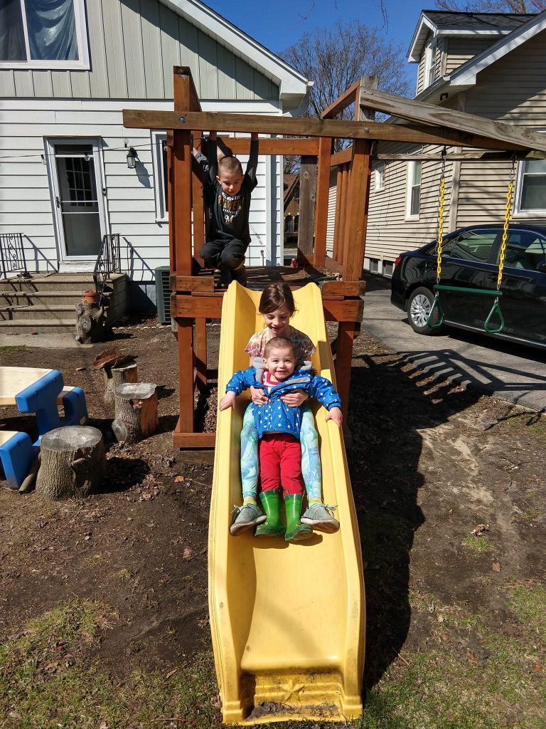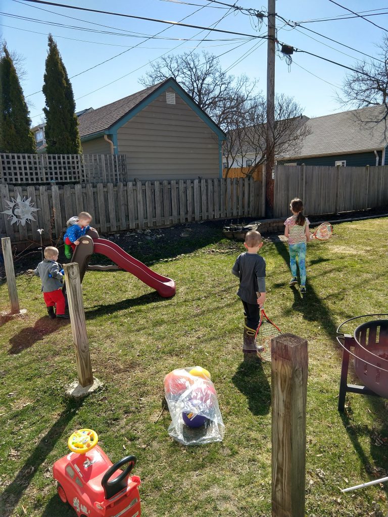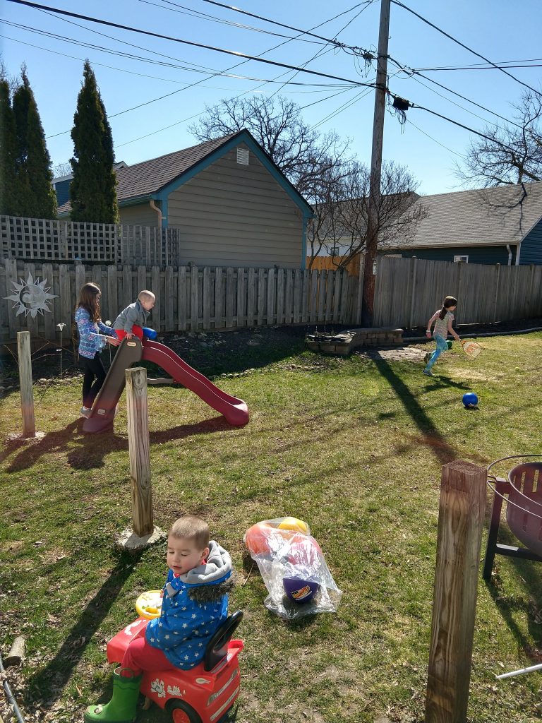 Absolutely gorgeous weather today, so they all got out to play after their online class meetings