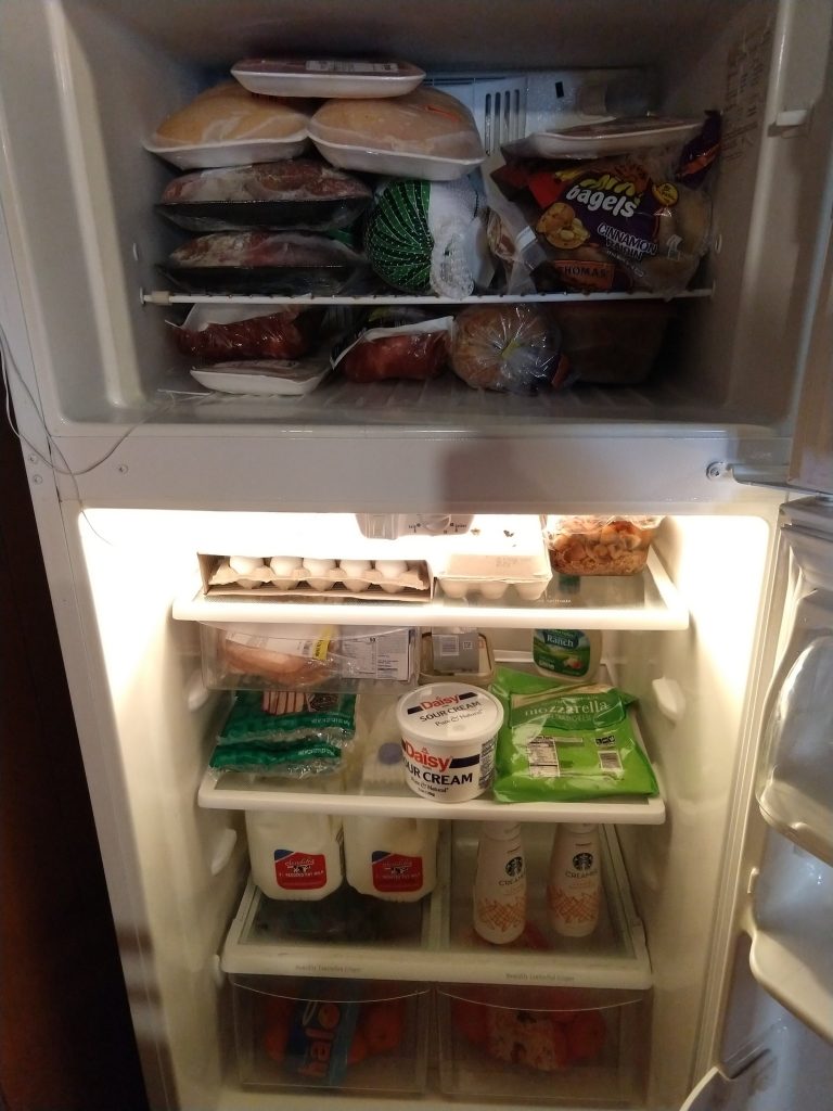 Ryan went to the grocery store for what was hopefully a 2-week stockpile. I plugged the chest freezer in in the basement the other day to prepare.