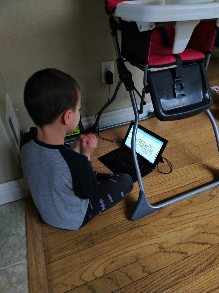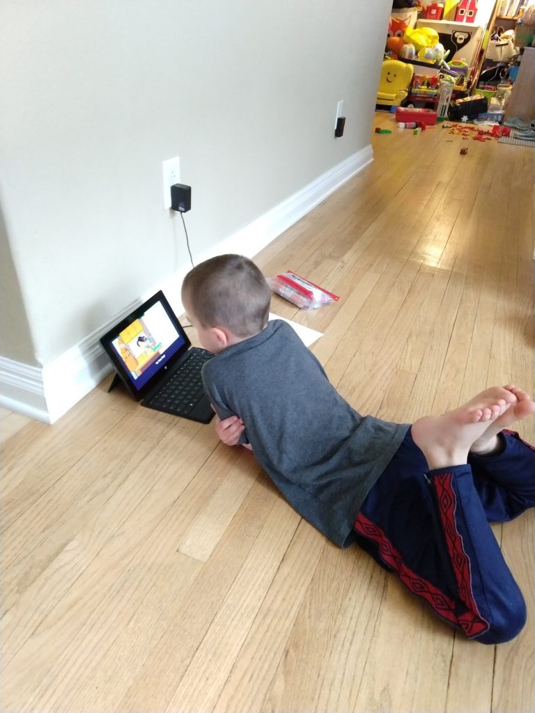 So. Here we go into week 2 of VLT. The kids are all still really enjoying it, but I know Morrison especially gets bored easily. He loves all the lessons and videos and activities they get each day, but once he’s done with everything and his sisters are still sitting at the table working on their assignments for a couple more hours, his little body gets antsy. I do let him go outside and play whenever he wants when that happens, but of course he adores his big sisters and always wants to play with them. He is very good, though, about going outside and playing with the twins. And so far they’ve all done a great job making sure those 2 stay only in the backyards. I take no chances letting any of them play out front, because they still aren’t that attentive about getting out of people’s way when they pass by on the sidewalk.