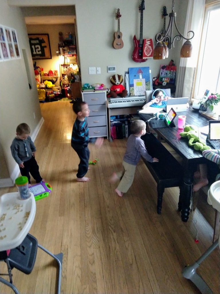 Naps for the boys (except A, who I knew wasn’t going to sleep right since he fell asleep in the stroller during my run), shower for me, reading and tablet time for the girls