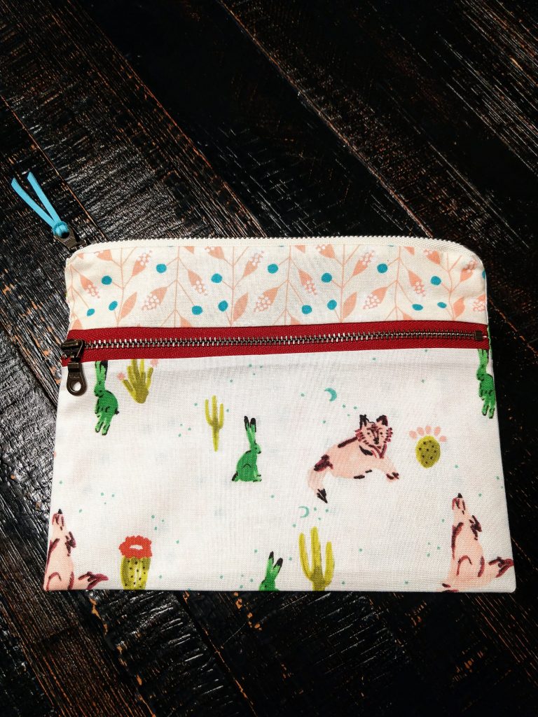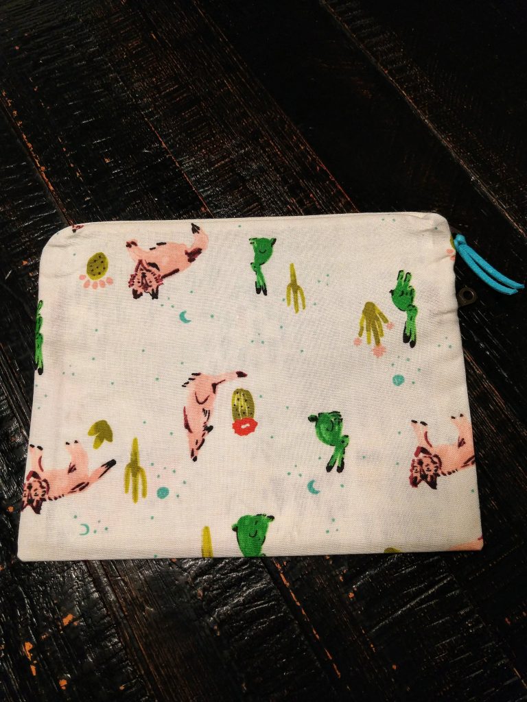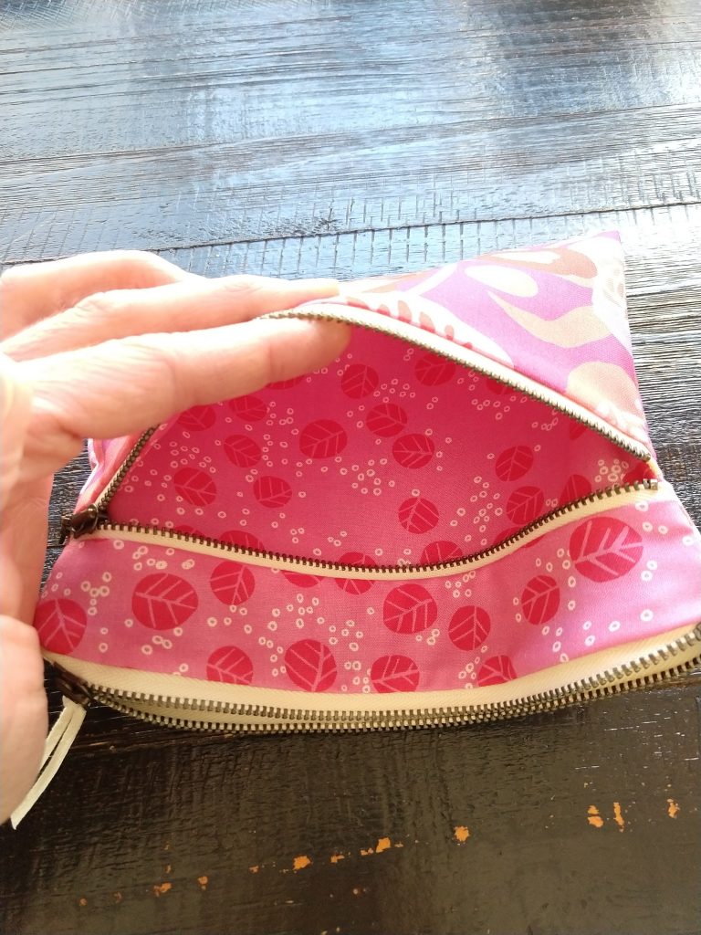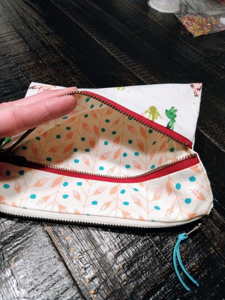 Tonight I made another one of the 2-zipper pouches, and it’s my best and favorite one yet. Perfect timing, because it’s finally one for me! 😉