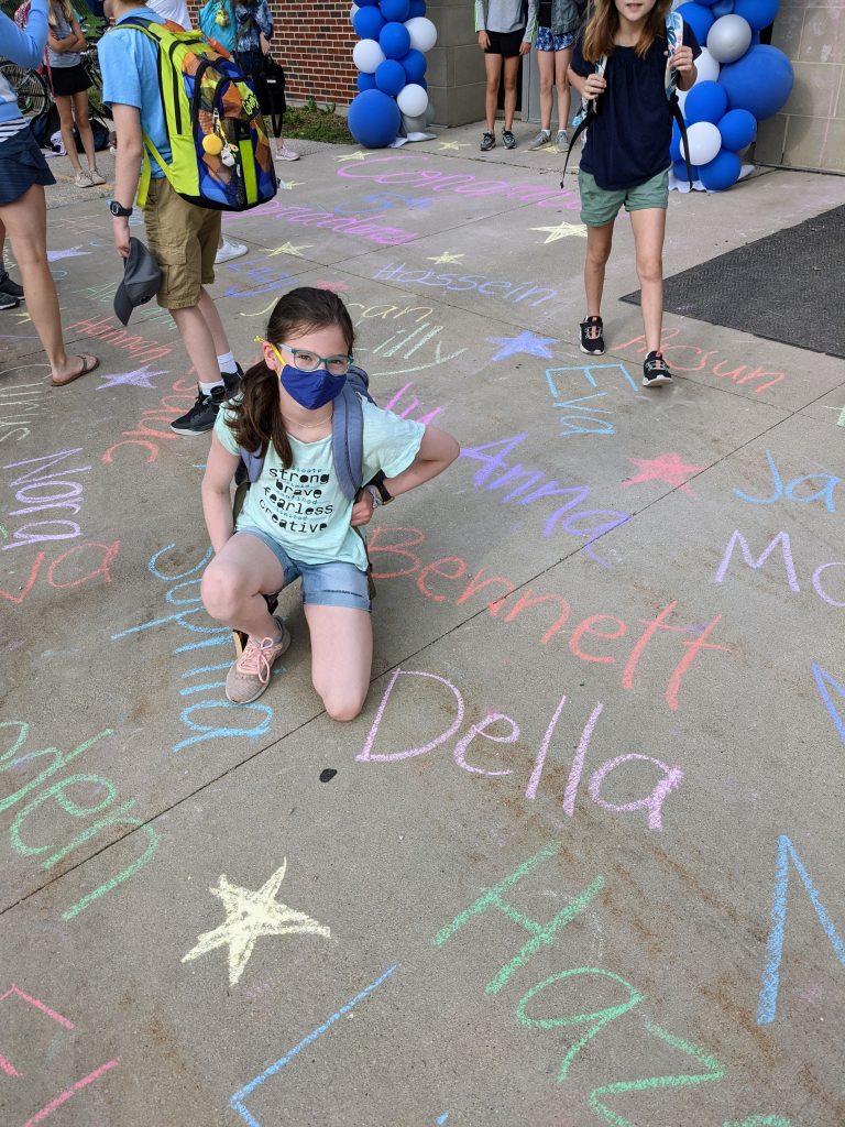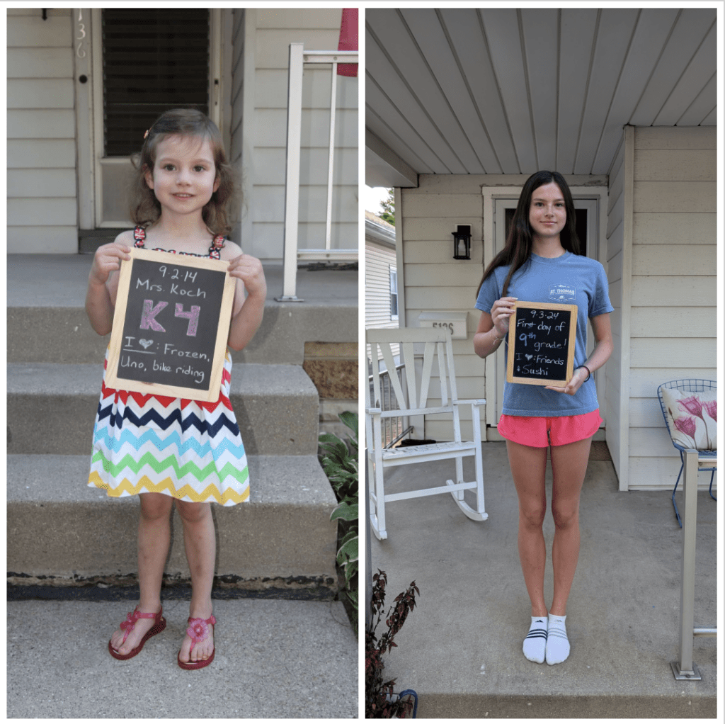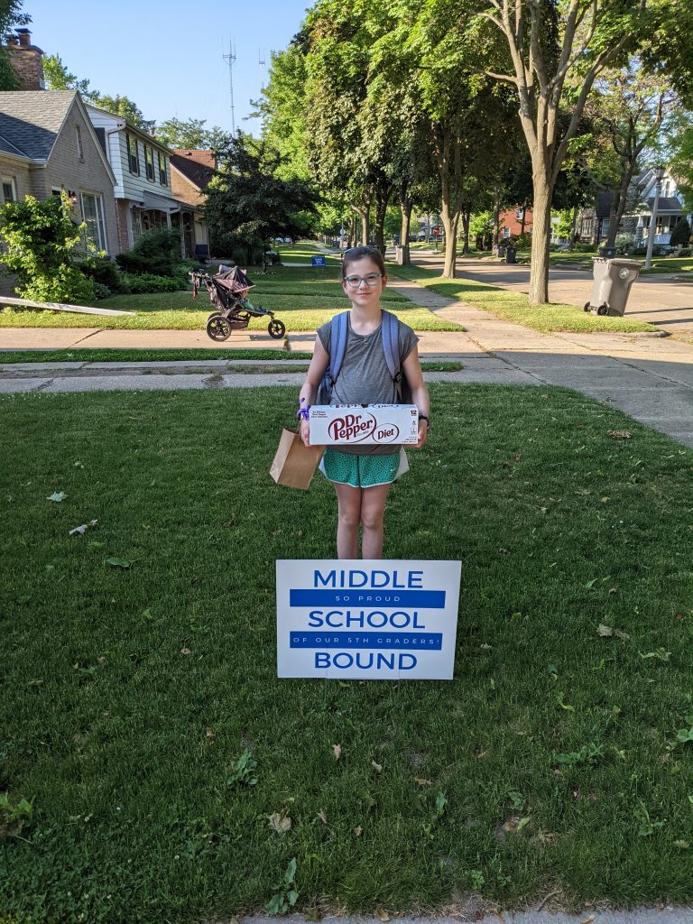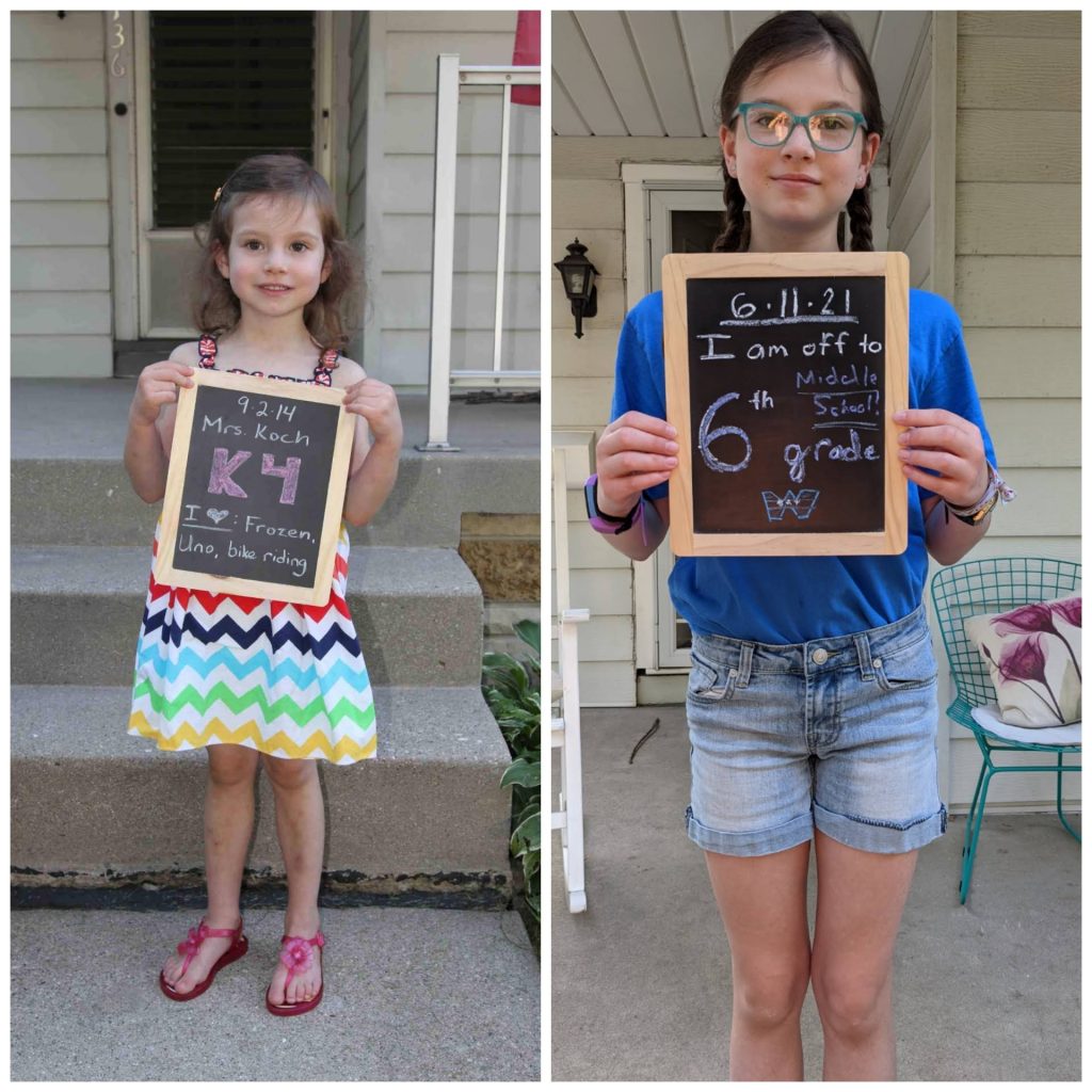 For all the “grown-upness,” though, she still loves to be silly. Making faces, picking on her siblings, having summer or weekend sleepovers with the twins, burping the alphabet, showing me all of her purchases and product unboxings. She tried to get a summer job this year, but that didn’t pan out. She did do some mowing for one of the neighbors a couple times, but it wasn’t quite the regular paycheck she was hoping for. We travel a lot during the summer, though, and she had lacrosse and cross country practices, so I’m not sure where she was planning to put that job. So not totally grown up quite yet… 😉 She also has a tiny strawberry plant that we got from a neighbor’s baby’s 1st birthday party this summer that she started from seed and has been taking meticulous care of – bringing it in during heavy rains, misting it with a spray bottle when it’s dry. Still the caring peanut she’s always been.
