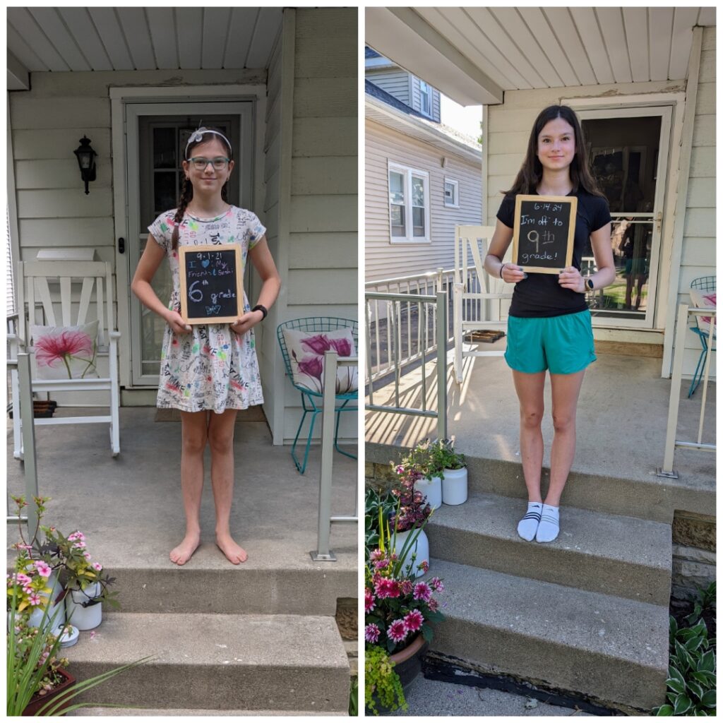 But the independence. She chose and scheduled all her classes by herself. She’s already thinking about colleges, seeing which ones on Ryan’s list of tuition exchange will fit her best. She keeps track of all her practices and meets by herself. (in fairness, i obviously do, too, but she almost never needs a reminder for anything) She started going to the chiropractor with me this summer so we have all those appointments set up. Side note – her scoliosis got much worse over the past 5 years so we had to go back to the back doctor for x-rays this summer, but fortunately she’s pretty much done growing so it shouldn’t get any worse; we go back for follow-up x-rays in a couple more months to confirm that. She makes plans with her friends and they do stuff all on their own. I always tell her I don’t remember doing anything on my own when I was her age. But I also didn’t grow up in a place like this where we could walk everywhere at any time and never need rides from our parents. She can pretty much fully take care of herself and siblings when needed, but she does still prefer my help on that kind of stuff. 😉 And I’m happy to give it!