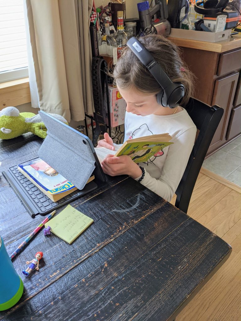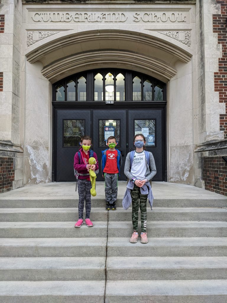 The kids are so happy to be back in the classrooms with their teachers and friends, and so am I! We were elated that Della and Morrison’s teachers switched back to in person, too, so they got to stay with them. Lana’s virtual teacher actually didn’t keep her own classroom this quarter so Lana wouldn’t have been able to stay with her anyway, and Lana’s new teacher seems wonderful. Plus, her virtual teacher now helps out with reading groups in Morrison’s class and Lana gets to see her for an hour each Wednesday during asynchronous office hours, so that worked out great. As much as I miss not having them here all day anymore, I feel with every fiber of my being that sending them back for this final quarter of the school year was definitely the right choice for us. Even the walking to/from school routine feels good again. We’ve still had asynchronous Wednesdays, so I do get to keep them with me those days.