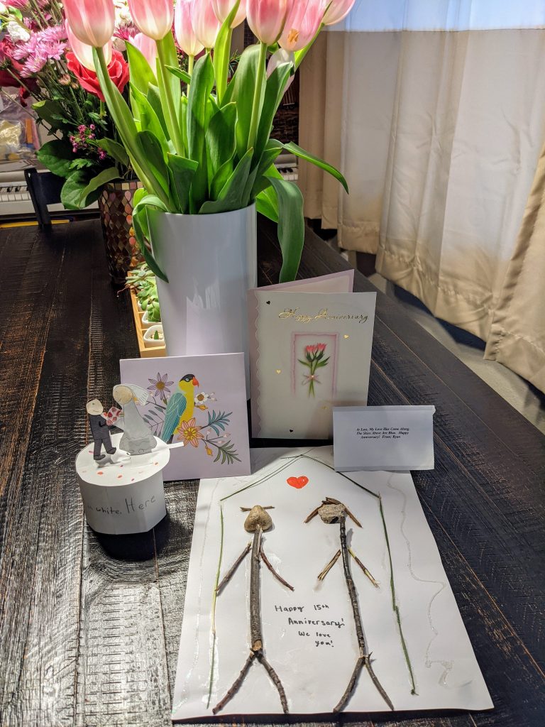 Was a big day around here. The big 3 went back to in-person school for the first time in 174 school days, and it was mine and Ryan’s 15th anniversary.