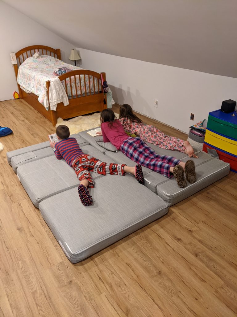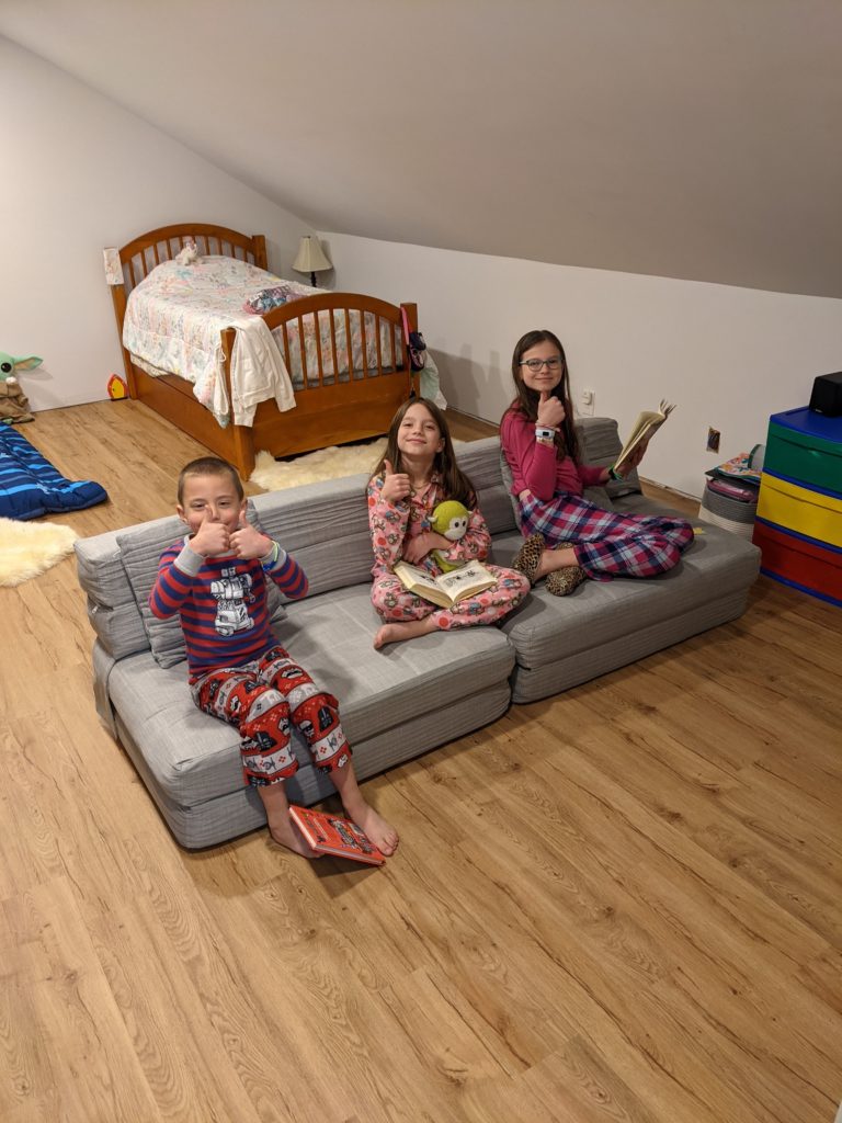 Morrison came along the following spring, still no room up there. The twins came along after that, still no room up there. It was getting a little cramped in here, but nothing crazy. Many more people have lived in houses much smaller than ours and survived splendidly. We’re all healthy and happy, just cozy.
