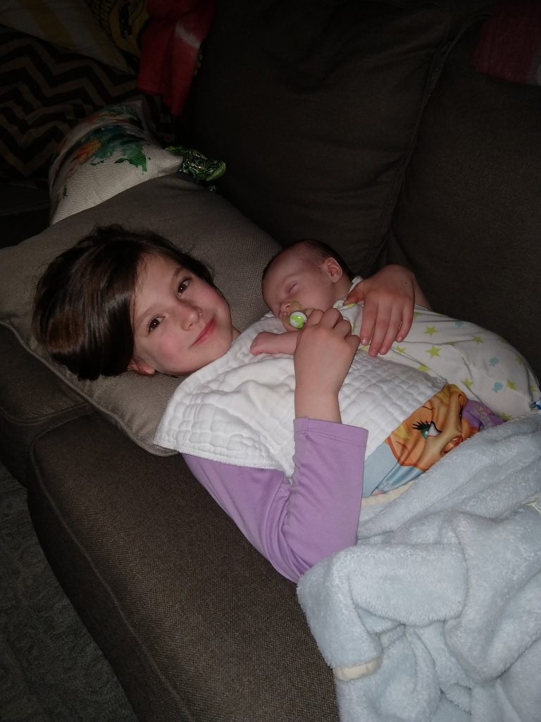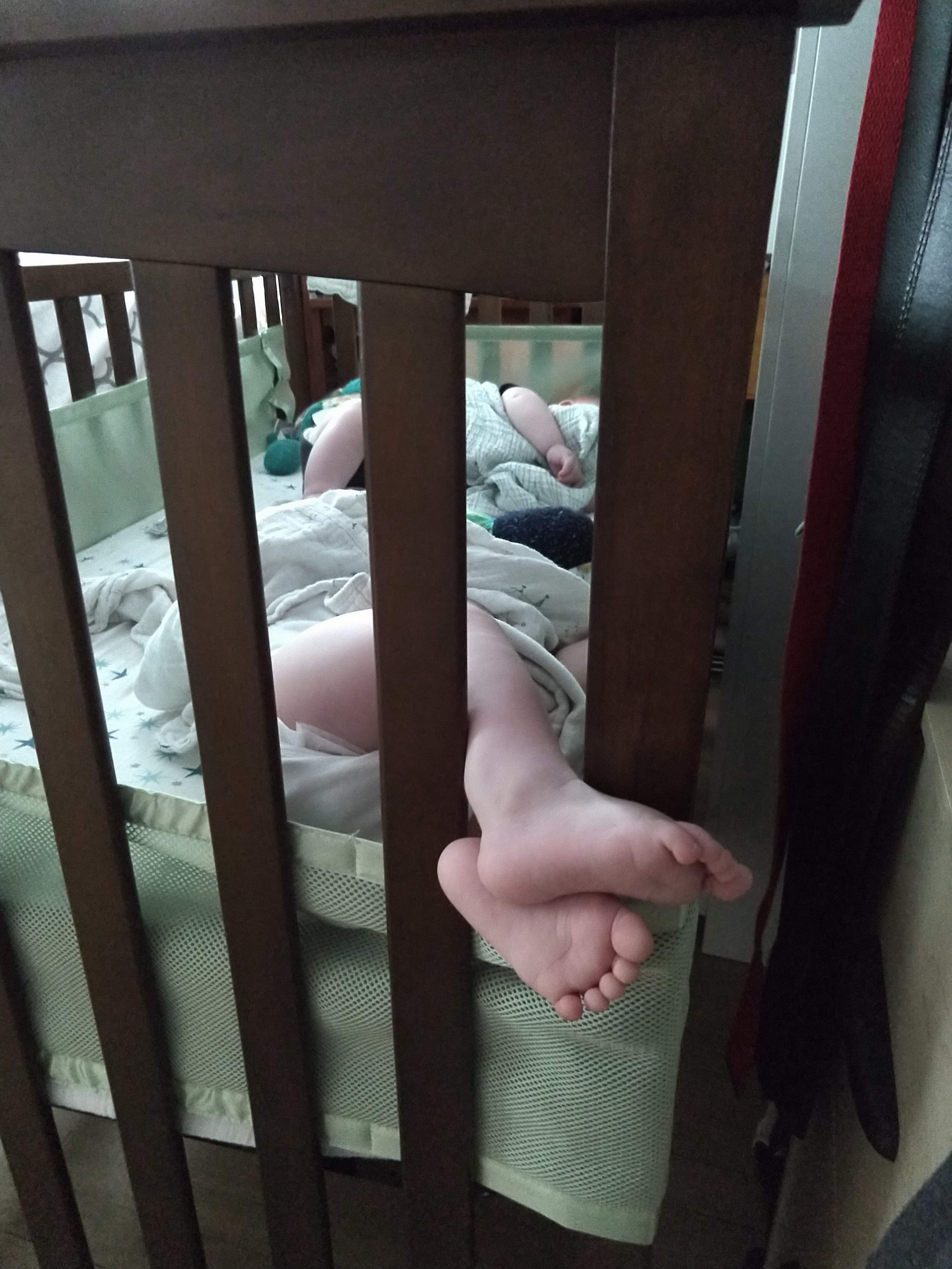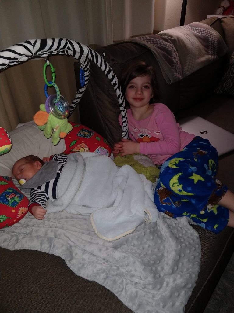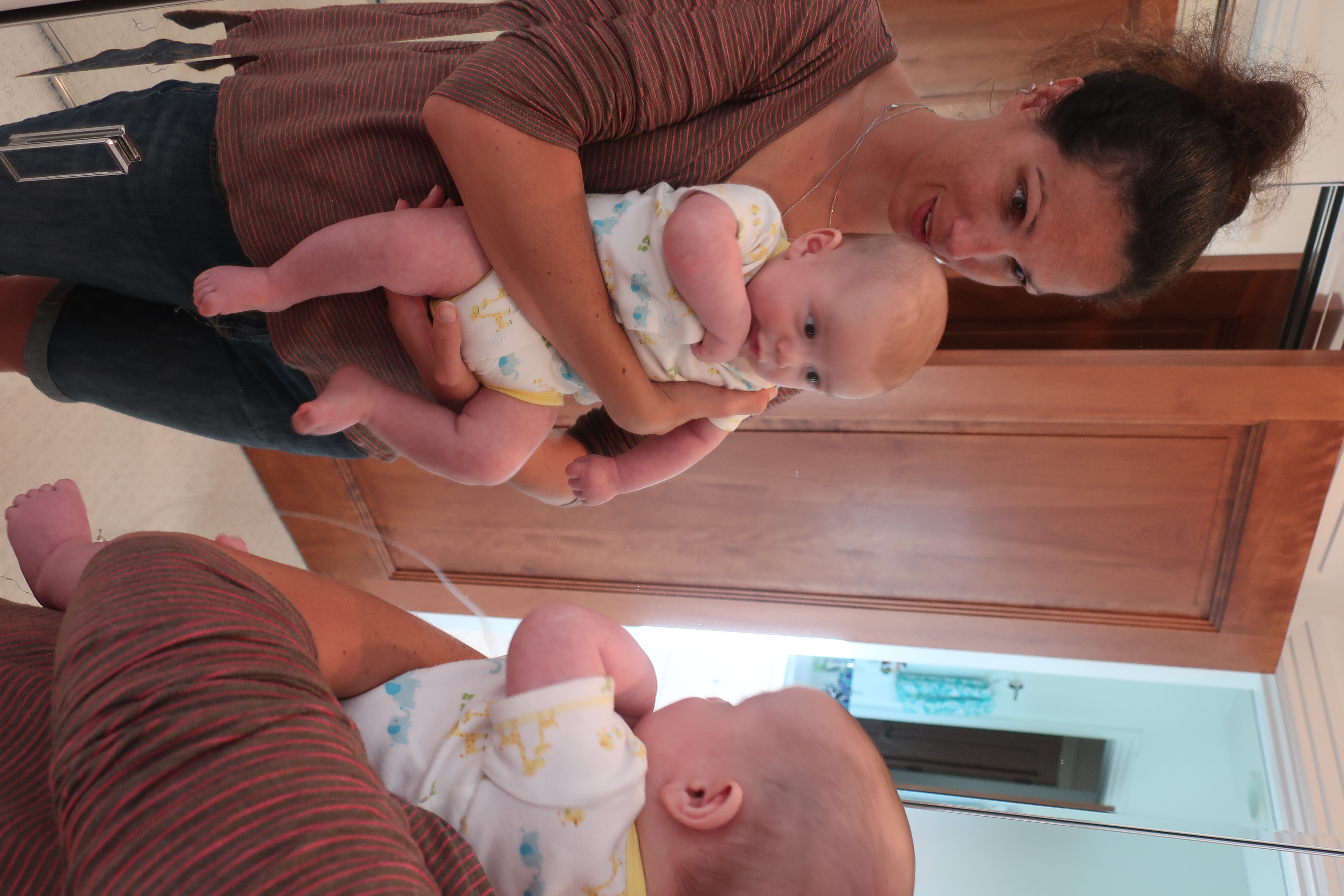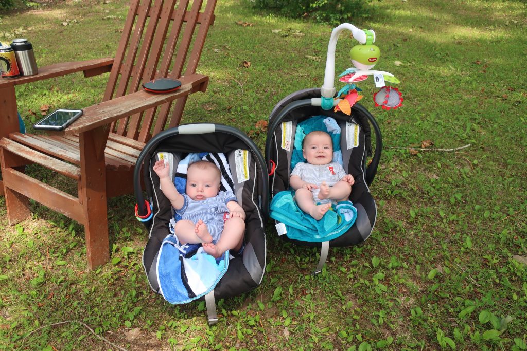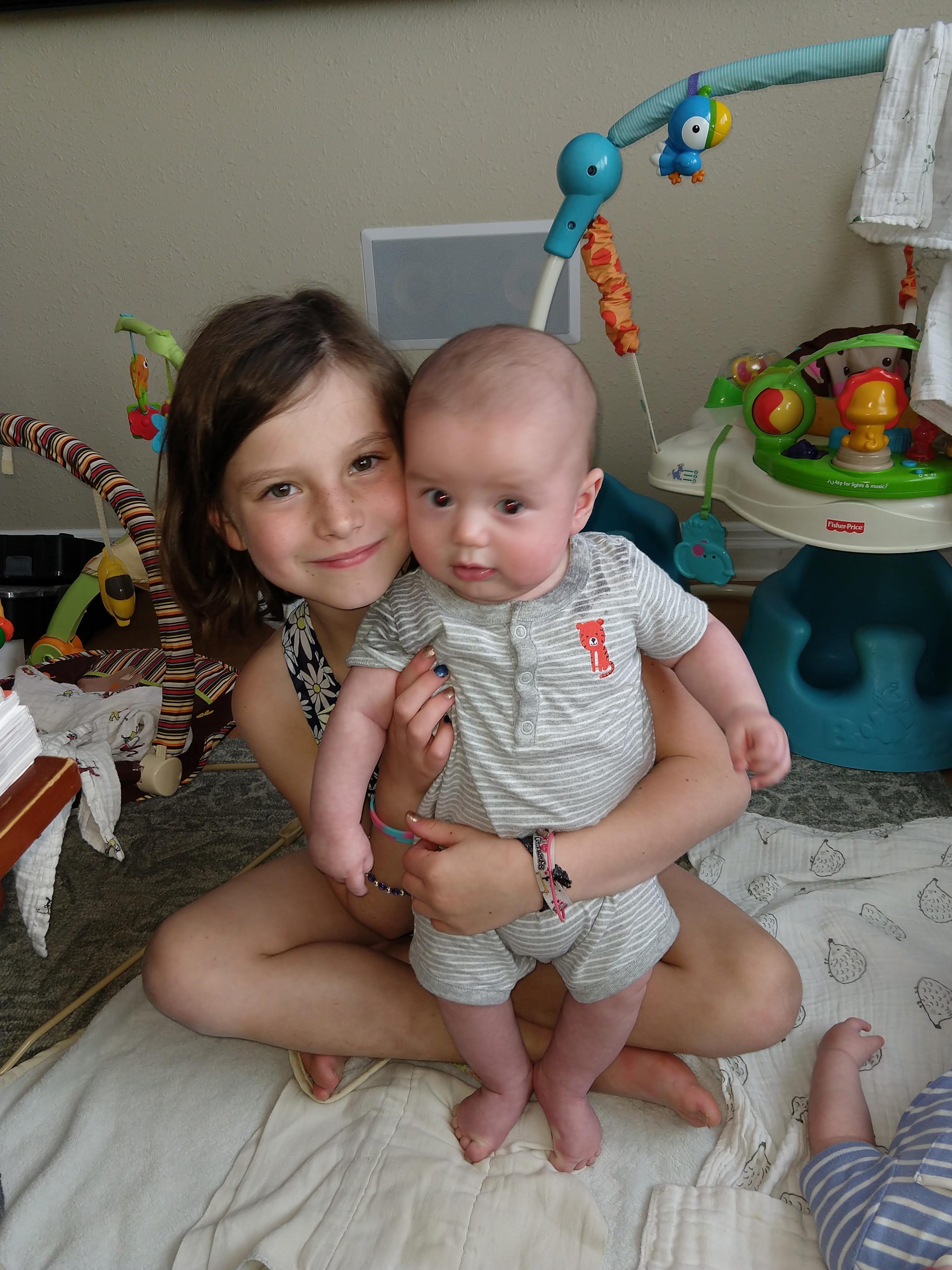They both have their bottom front 2 teeth and got those about a month ago. And they instantly started biting me with them while nursing, so that’s super fun. Fortunately I only nurse them once overnight and sometimes once around wake-up time now with bottles of pumped milk and formula throughout the day, but that still hurts when it happens!